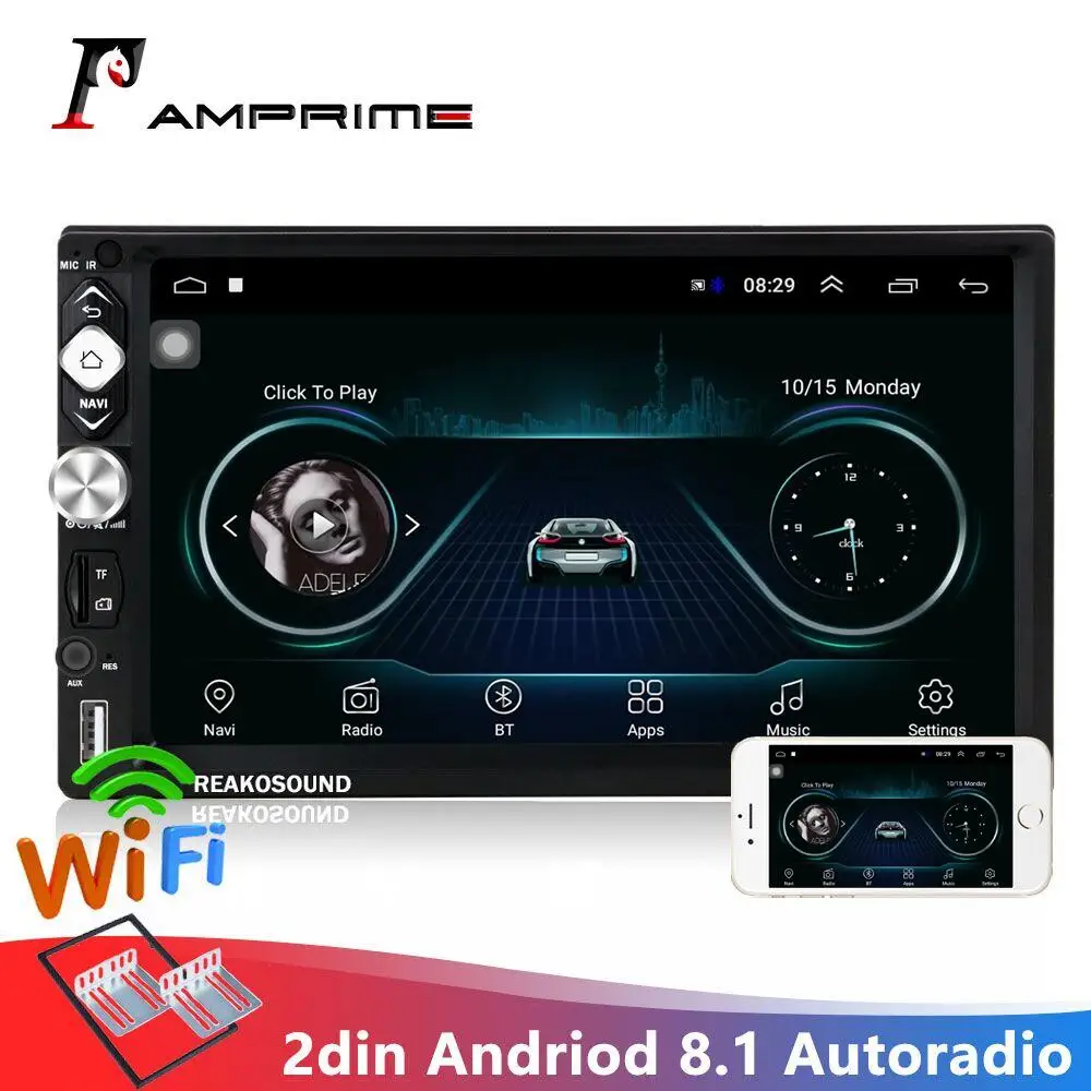 Автомагнитола AMPrime 7 дюймов, 2 Din, Android 8,1, автомобильный мультимедийный плеер с GPS-навигацией, Bluetooth, аудио, Wi-Fi, USB, FM-радио MirrorLink