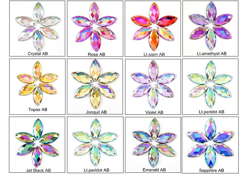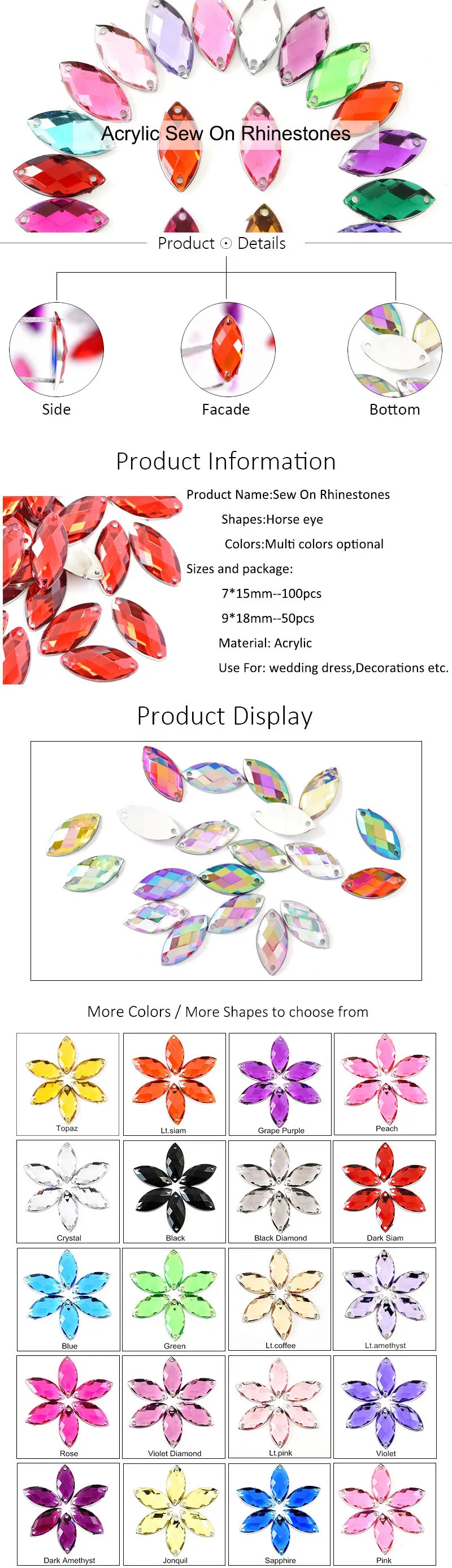 Акриловые кристаллическое Украшение конский глаз Маркиза, множество цветов, пришивные стразы, Пришивные бусины, аксессуары для швейной одежды F0148