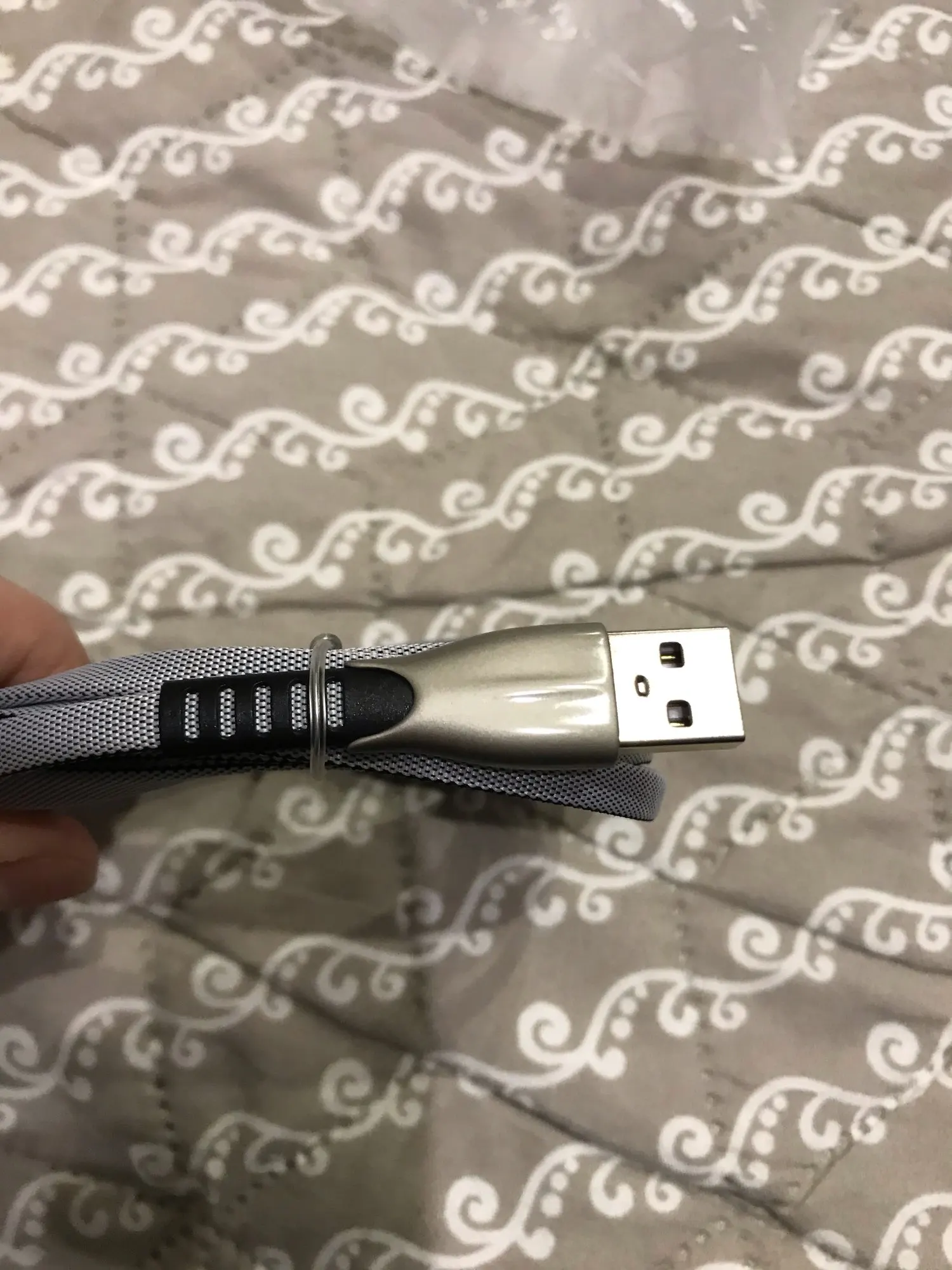 Хороший кабель. Плотный, длинный. На кровати удобно подключать телефон в зарядку. В штекере держится крепко.
