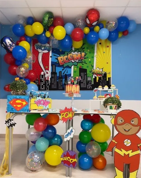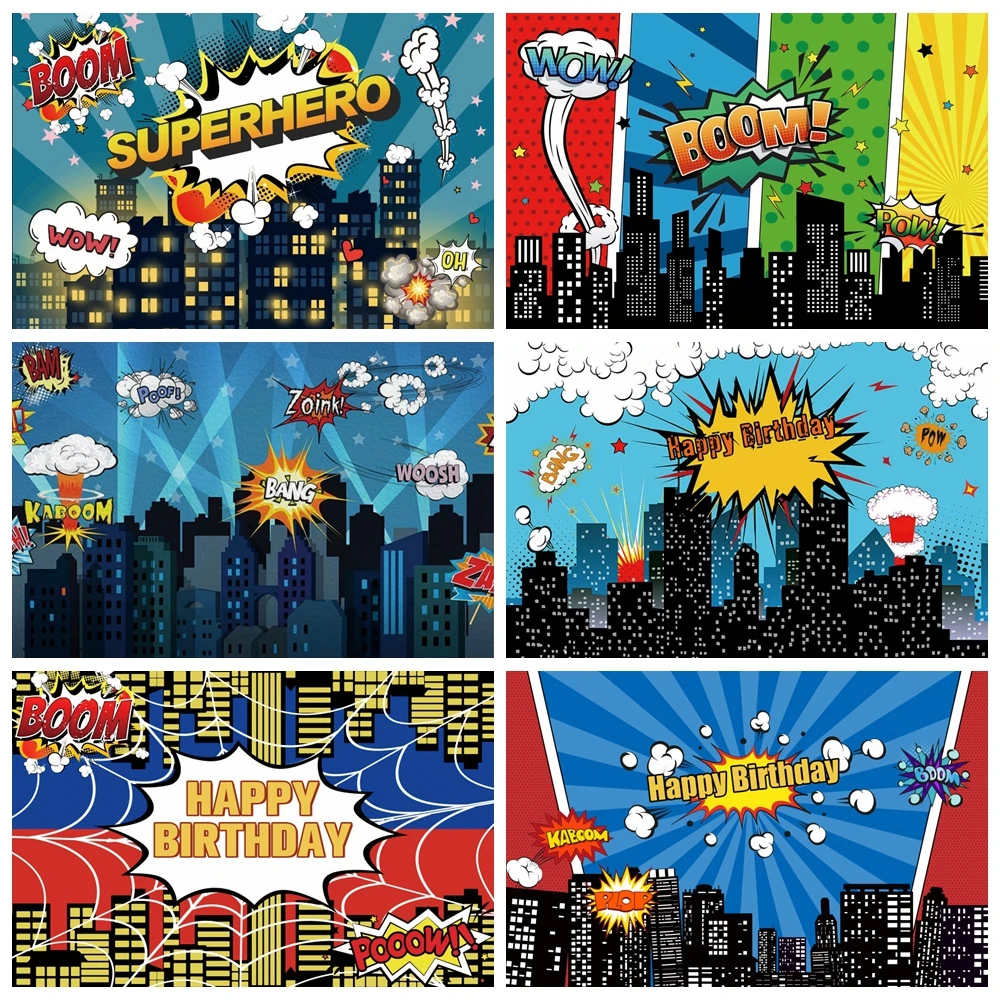 Виниловый фон для фотосъемки Yeele, с мультяшным супергероем, зданием города, супергероем, для детской вечеринки в честь Дня Рождения, Виниловый фон для фотостудии
