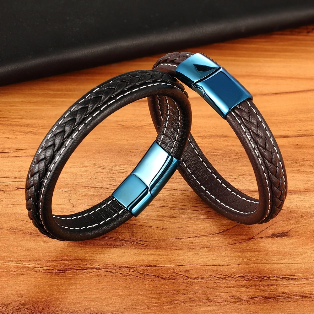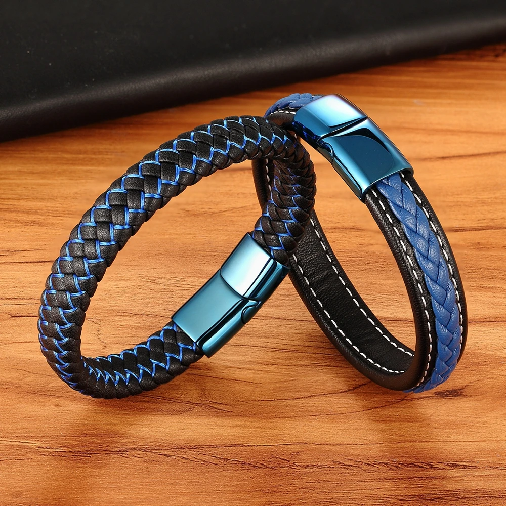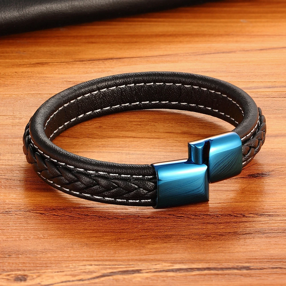 Новый тренд, кожаный браслет, 7 цветов, мужской браслет из кожи и нержавеющей стали Комбинированный браслет ручной работы, коллекция, подарок