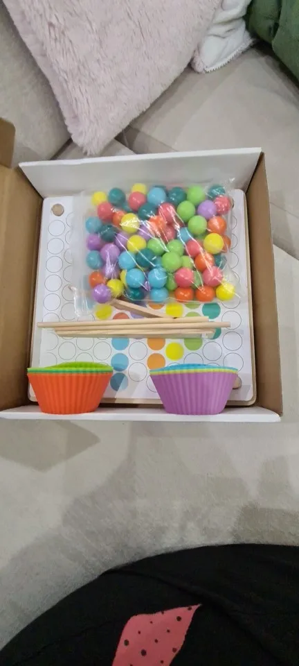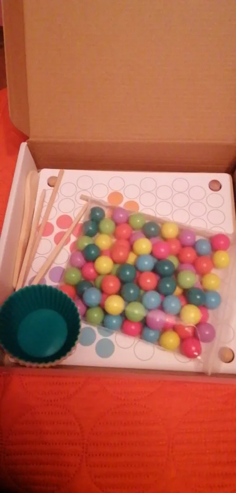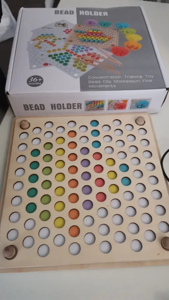 결제 완료 후 9일만에 도착했습니다 아이에게 놀이하며 색깔을 알려주려고 구매했습니다 근데, 구슬에 갯수가 색깔마다 다 다르네요