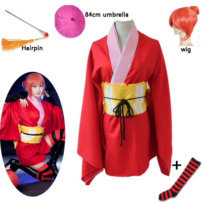 Женский костюм для косплея из Токийского аниме Gintama Kagura, красное японское традиционное кимоно для Хэллоуина, косплей и парик