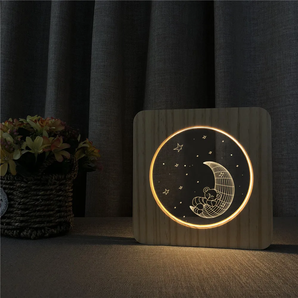 Медведь на Луне 3D светодиодный ариловый деревянный Ночник настольный светильник переключатель управления резьба лампа для друзей подарок вентилятора Прямая поставка