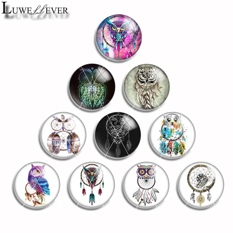 10 мм 12 мм 14 мм 16 мм 20 мм 25 мм 471 Ловец снов в виде совы, Смешанные Круглые бриллианты, 18 мм, амулетный браслет с кнопками