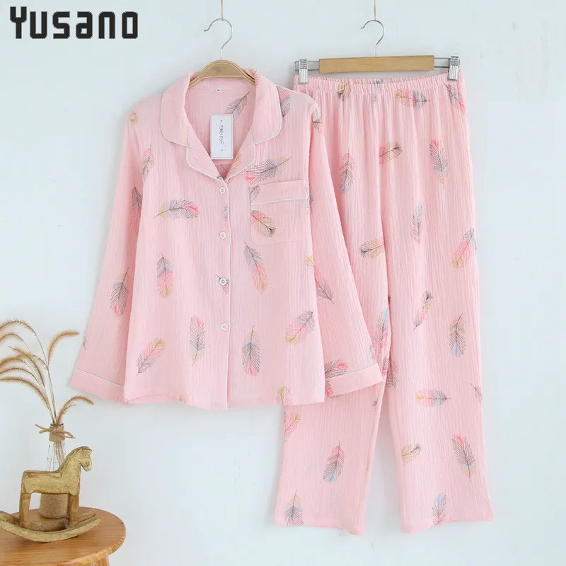 Женская домашняя одежда из хлопчатобумажной пряжи, весенне-осенняя ...