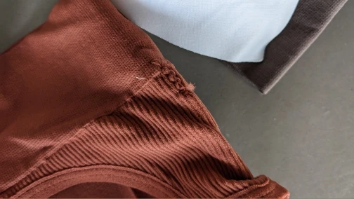 Топ некрасиво сидит на теле, одна чашка с вмятиной