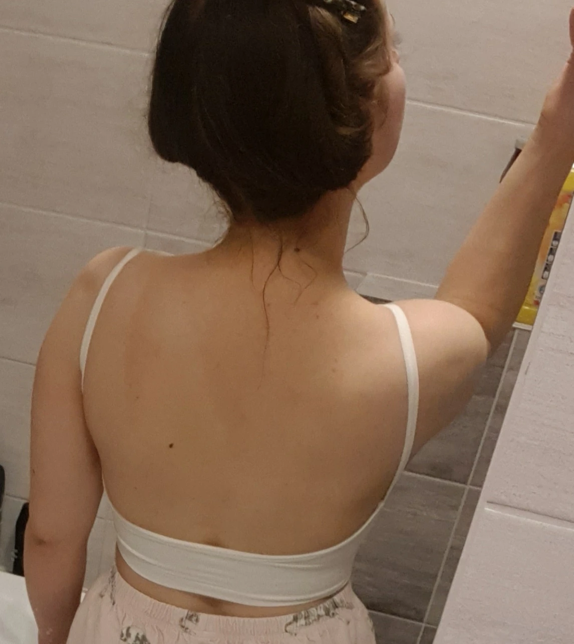 Заказал 22 сентября, прибыл 9 октября в Италию. Материал хорошего качества, подушечки маленькие и их легко перемещать, но я думаю, что они немного малы для меня, особенно для моих плеч. Рост 170 см, грудь 85 см, Плечи 40-41 см. Посмотрите на фото, лямки идут наружу. Но цвет действительно красивый, а задняя часть выглядит красиво