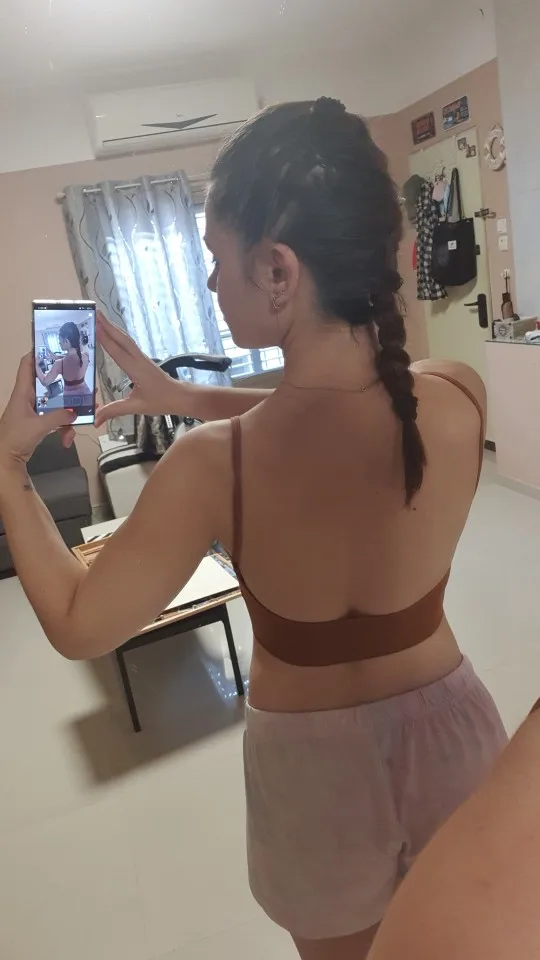 вырез совсем не как на фото, расстроена. форма выреза ни к селу ни к городу, лямки все время перекручиваются и становится не удобно. возможно если брать размер больше чем ношу, то не будет хотя бы перекручиваться, но маловероятно, к тому же вырез ужасный
