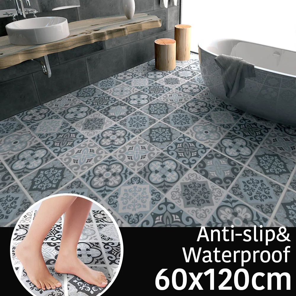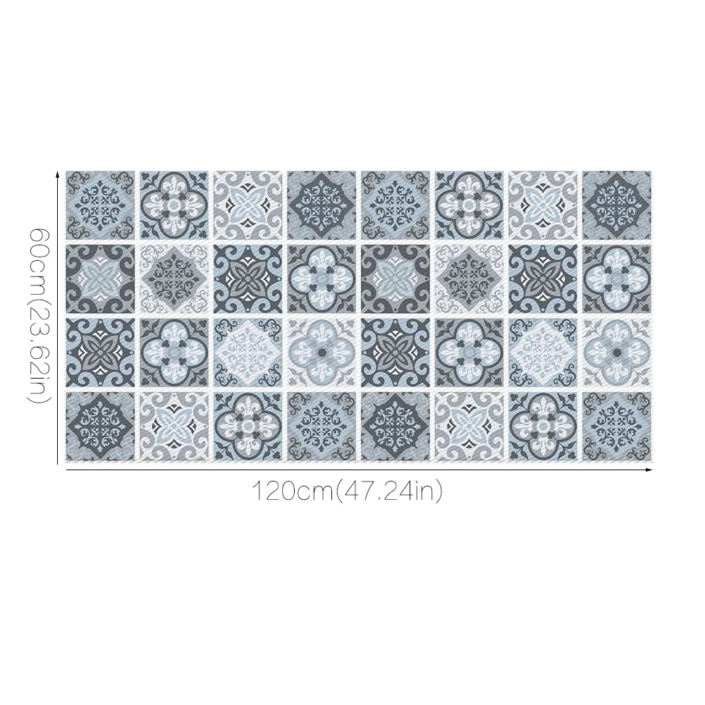 Наклейки на плитку, Кухонное украшение для пола, противоскользящие Водонепроницаемые Синие и серые настенные Стикеры для ванной, 60 х120 см