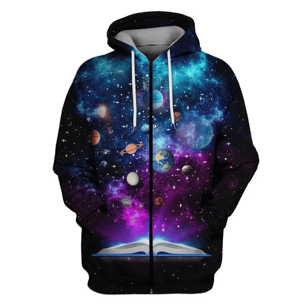 Толстовка унисекс PLstar Cosmos 3D Все планеты в Вселенной, уличная одежда с принтом книги, худи с галактикой