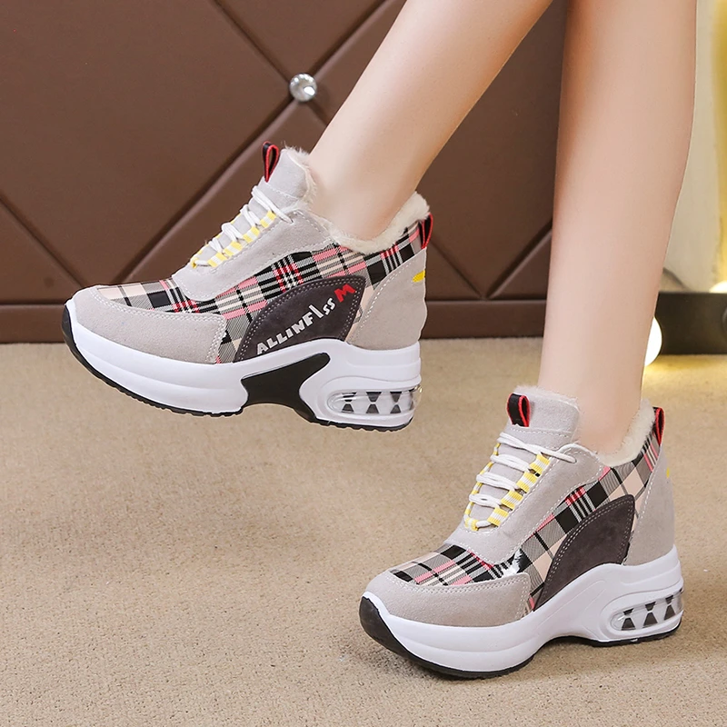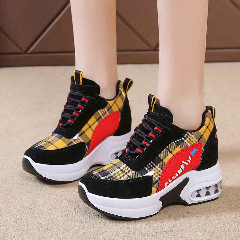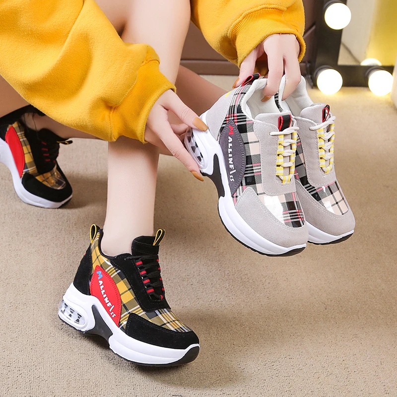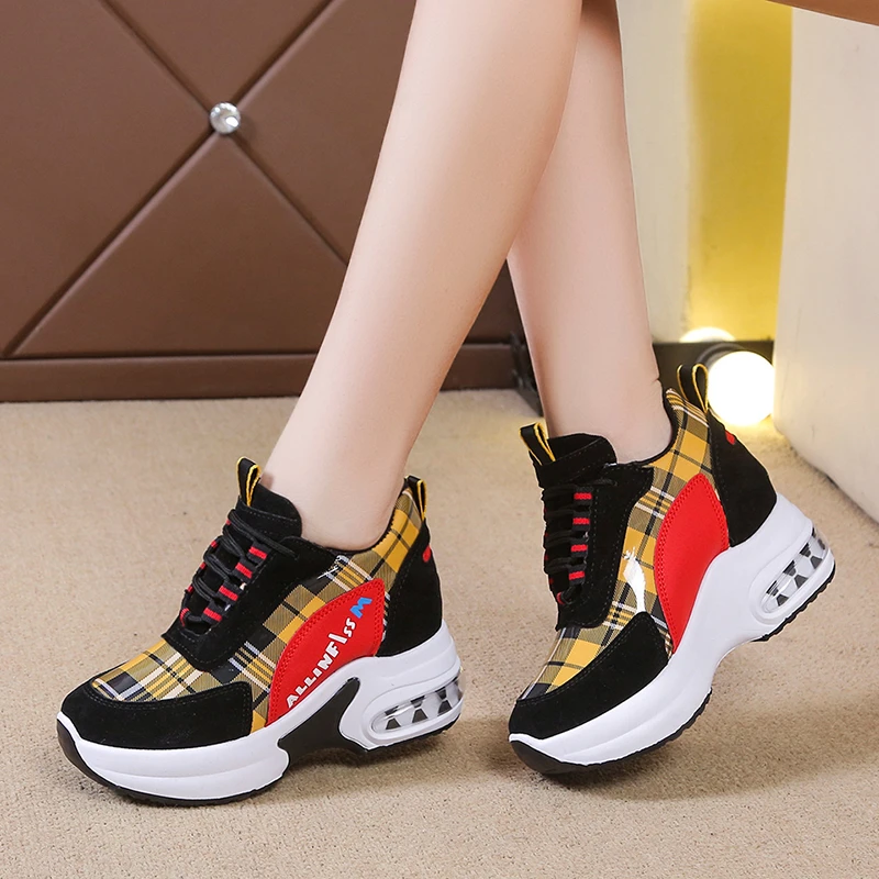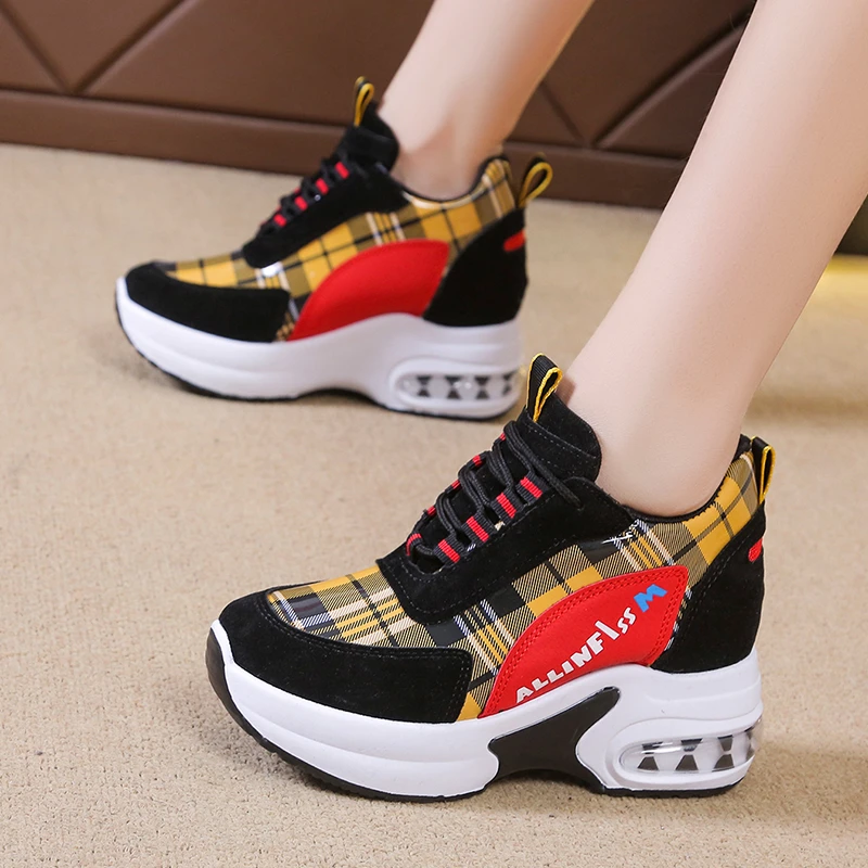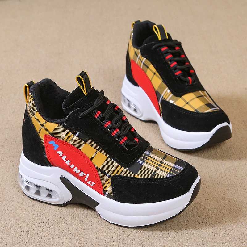 Туфли женские на платформе и высоком каблуке, Вулканизированная подошва, повседневная обувь, увеличивающая рост
