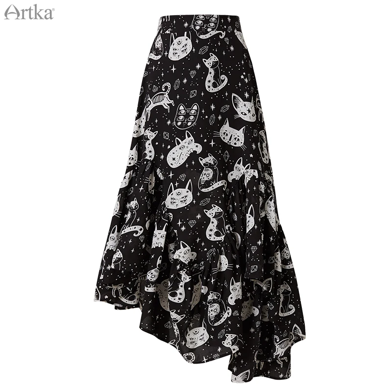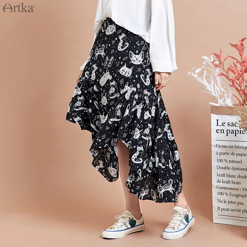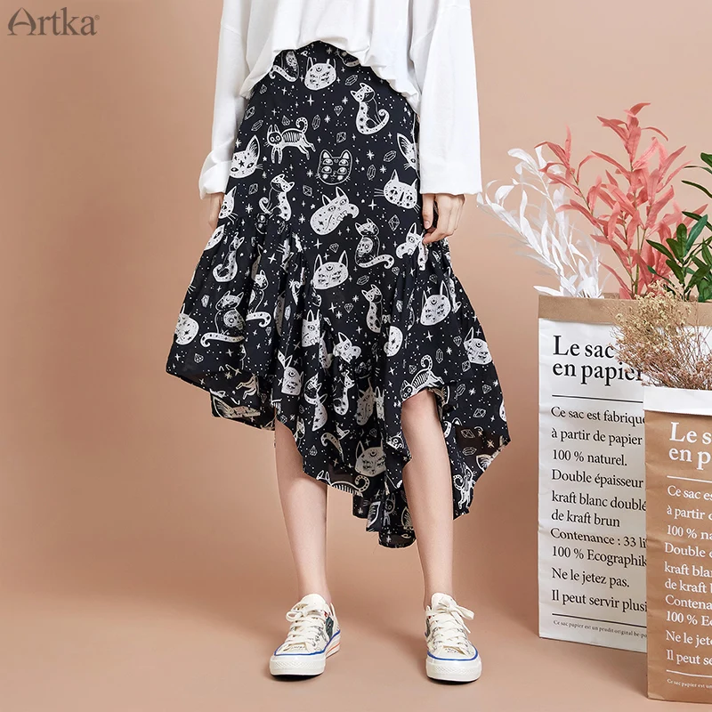 Женская шифоновая юбка с принтом кота ARTKA, элегантная юбка с оборками, модель QA15297Q на весну 2020