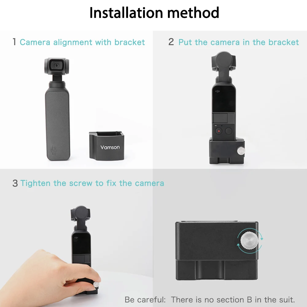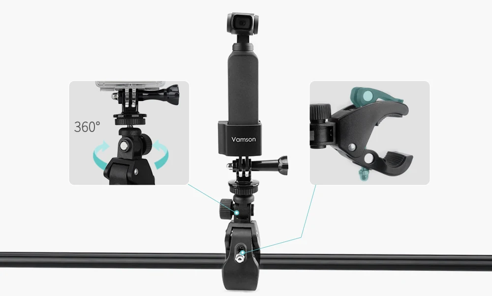 Комплект аксессуаров Vamson для DJI OSMO Pocket, шарнирный адаптер с креплением, зажим для селфи, штатив на присоске OPS02