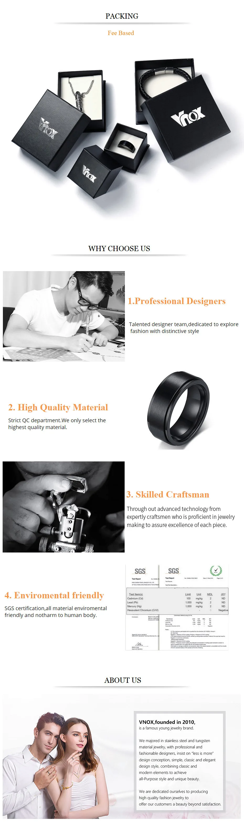 1. Материал: нержавеющая сталь, высокая устойчивость к ржавчине, коррозии и потускнению, анти-аллергии, металлический выбор высококачественных ювелирных изделий 2. Повод: уличный, Повседневный, повседневный 3. Размер: стандарт США, таблица преобразования размеров в другие страны 4. Упаковка: коробка или бархатный мешочек для упаковки предметов Фотографии товара