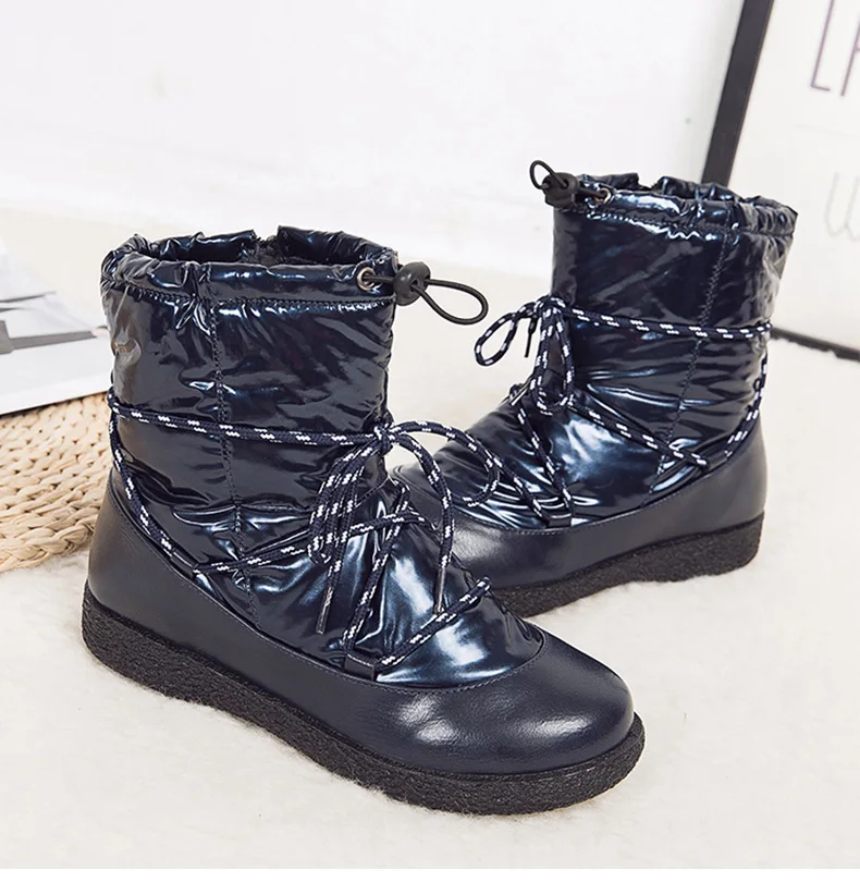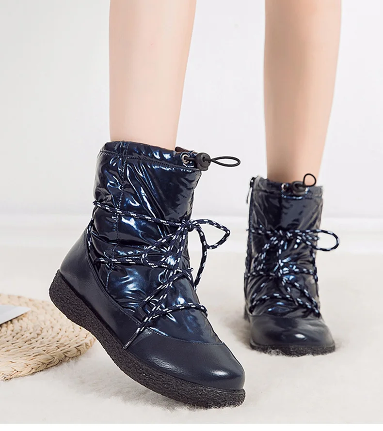 Женские ботинки; Водонепроницаемые зимние ботинки на низком каблуке; Зимняя обувь; Женские ботинки; Коллекция 2019 года; Теплые ботильоны на платформе; Botas Mujer