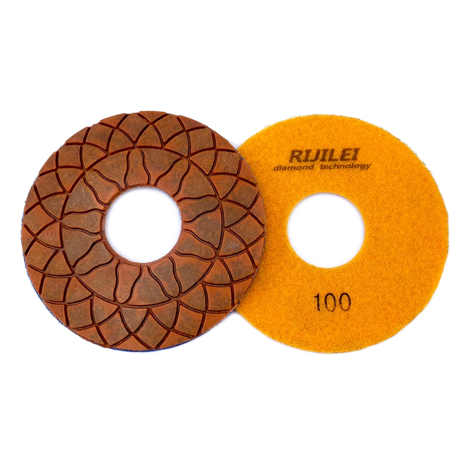 RIJILEI 4 шт. супер 6 дюймов Алмазный Полировочный диск колодки Влажные Медь связь с полировальной Подложка для Гранит Мрамор бетонный пол шлифовальный диск