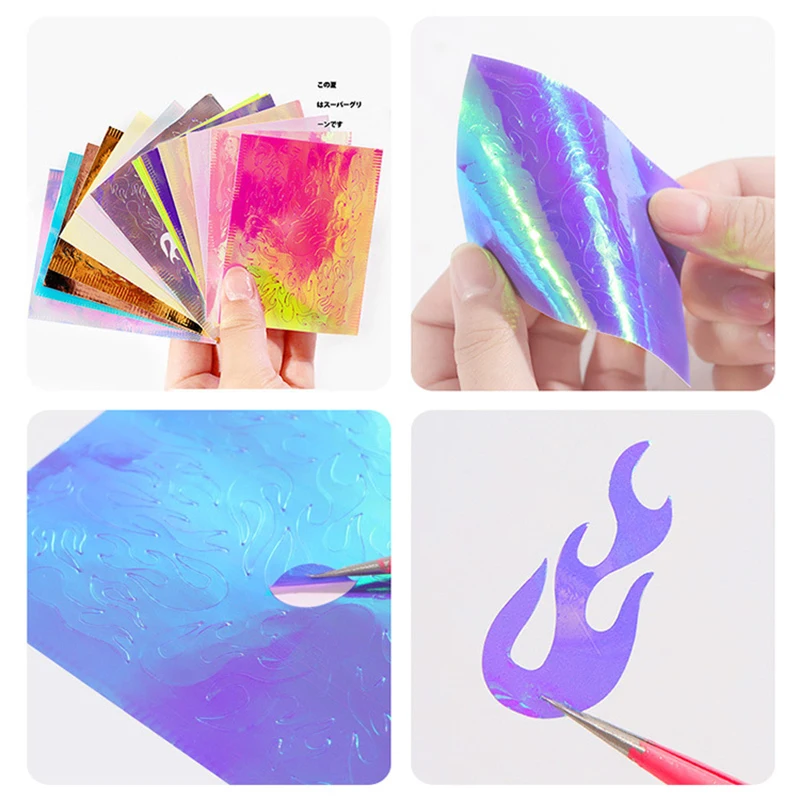 Пламя наклейки для ногтей 400 пламя16 листов Огненный дизайн ногтей липкая задняя часть Большое количество 16 шт пламя наклейки для ногтей