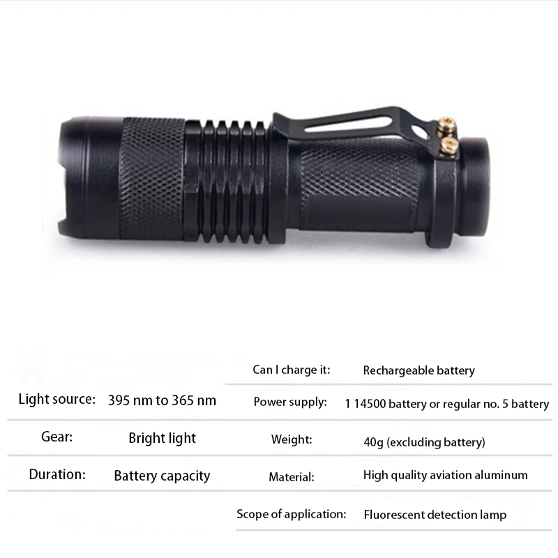Фонарик, ультрафиолетовый с функцией масштабирования для выявления следов мочи домашних животных, работает на батарее АА 14500