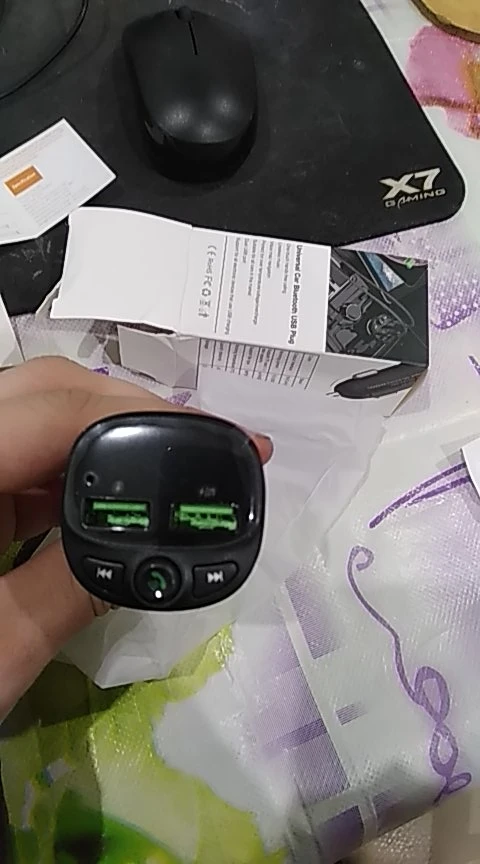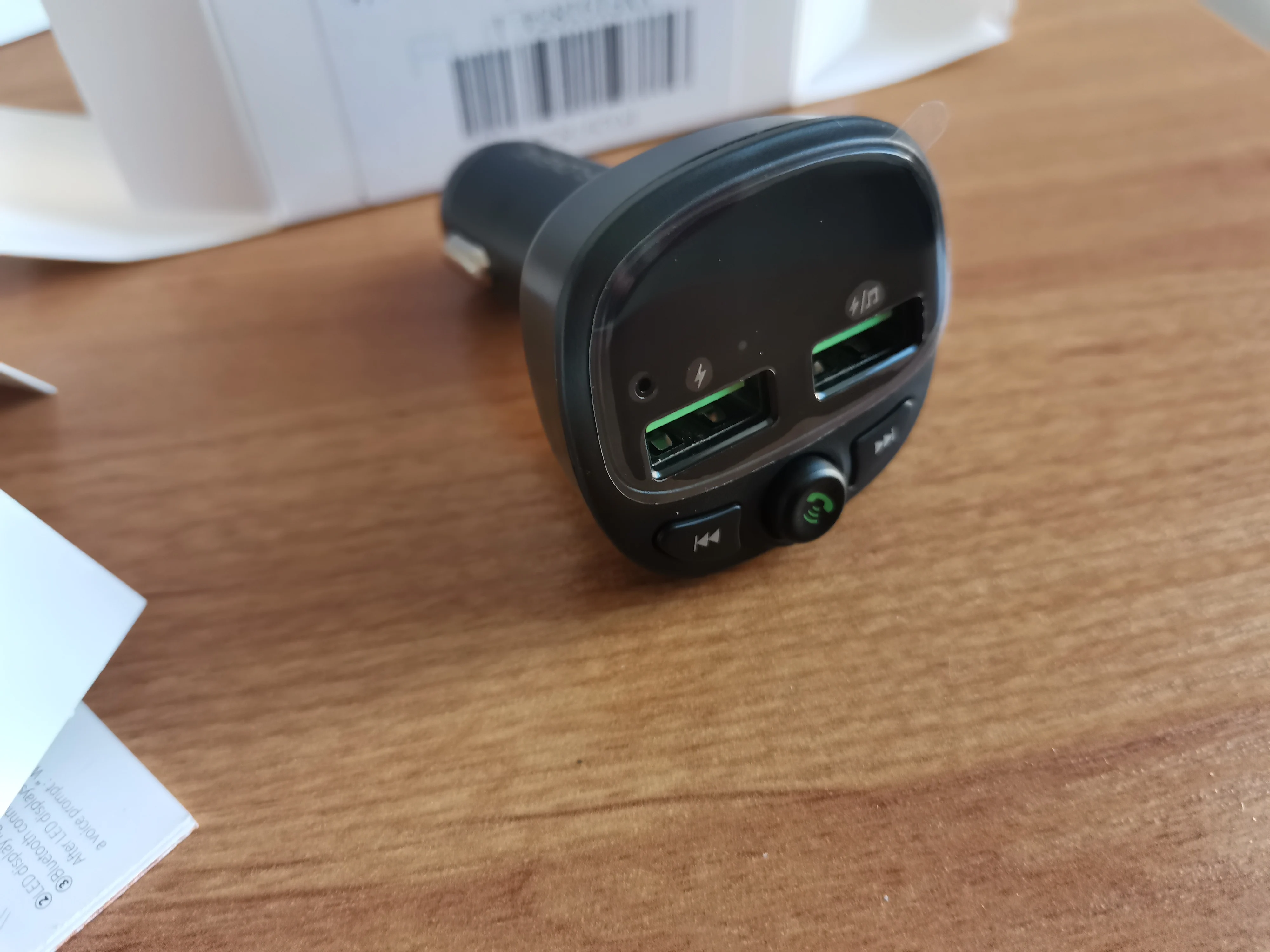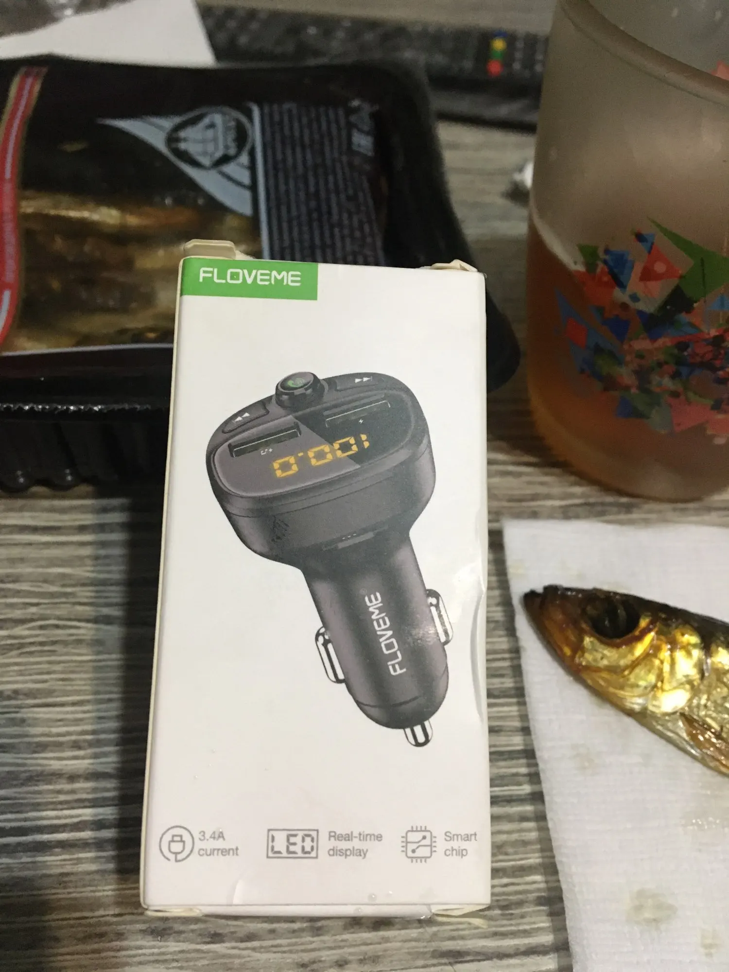 Заказ пришёл примерно за две недели. Упвкован в пупырку. Миниатюрная коробка внутри была слегка помята. Сам девайс целый. Очень легкий и маленький. Практически полностью пластиковый. Есть слот под карту памяти. Заявлена сила тока 3.4 А (максимальная) при напряжении 5 В. Один из USB слотов только под зарядку, во второй можно вставить флэшку с музыкой! В деле ещё не пробовал, поэтому о качестве звука пока ничего сказать не могу. Позже сравню с Xiaomi Roadmi 3S, который сейчас установлен в машине, но начал слегка хрипеть, как будто слушаешь старую пластинку с дефектами. Взял, как раз проверить, в чем проблема - в магнитоле или трансмиттере.