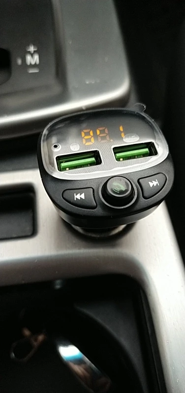 Доставка быстрая - 18 дней и в руках! Оба слота USB заряжают. С карт играет. С телефоном через блютуф сразу законнектился! Частоту настраивает после долгого нажатия на кнопку с трубкой- подбираешь под себя и потом на приёмнике. Всё работает! Звучание не Нi-End , но это как-бы и понятно. Хорошая штучка для своих задач.
