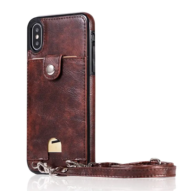 Кожаный чехол со шнурком и ремешком для iPhone 13, 12, 11 Pro Max Mini, XR, X, XS, 6, 6s, 7, 8 Plus, держатель для карт, кошелек, многофункциональный чехол из искусственной кожи