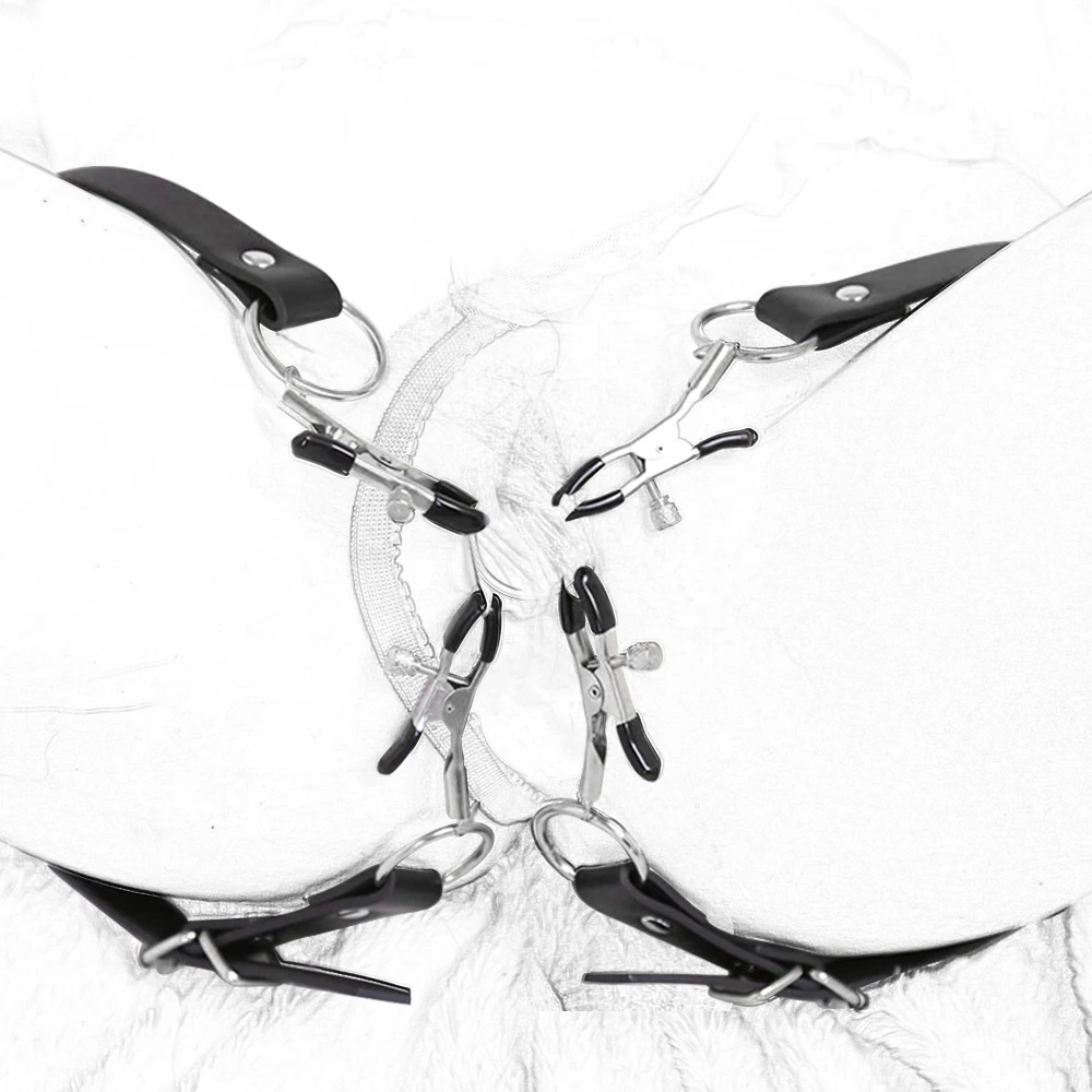 Лямки с 4 зажимами, клипса на клитор, открытая киска, БДСМ стимулят...