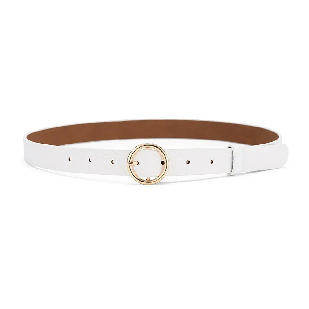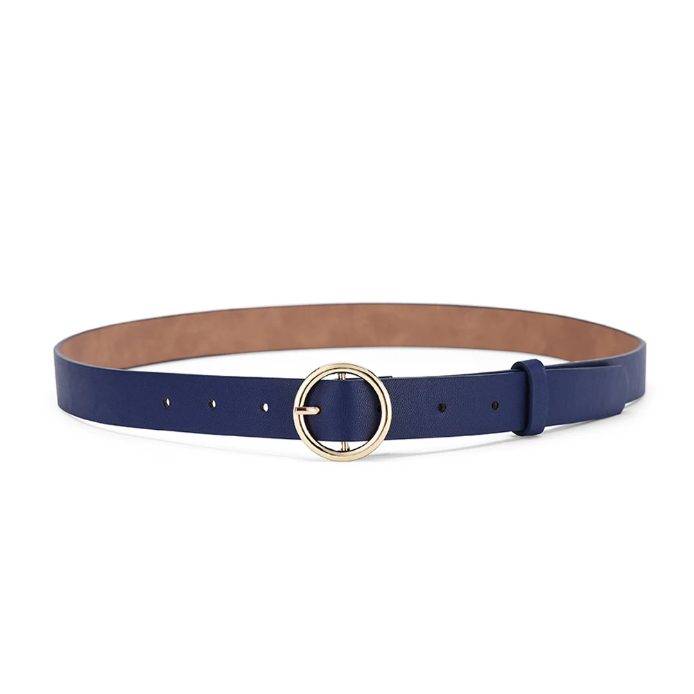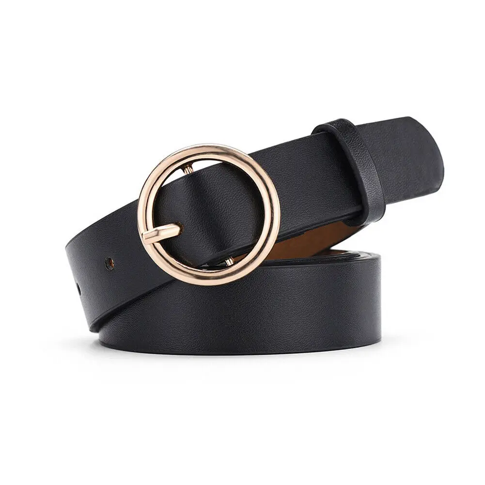 Ремень женский классический, модный однотонный кожаный пояс с кругл...