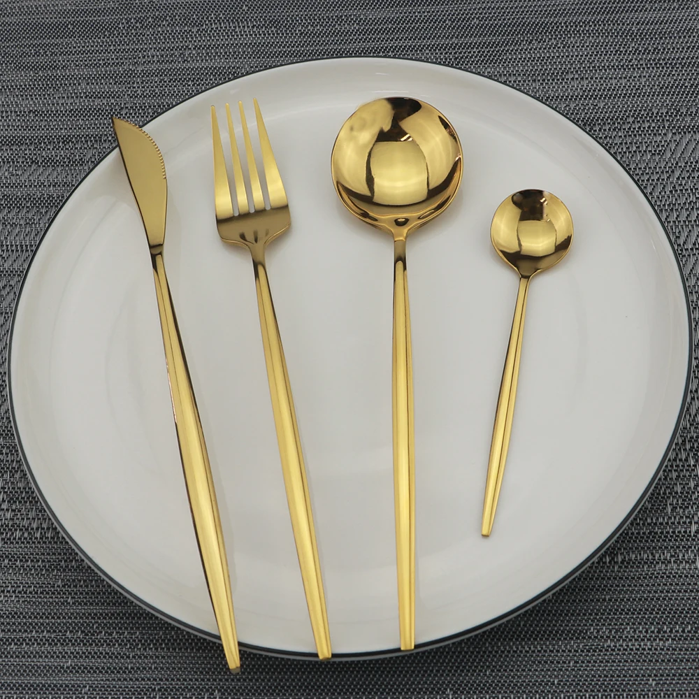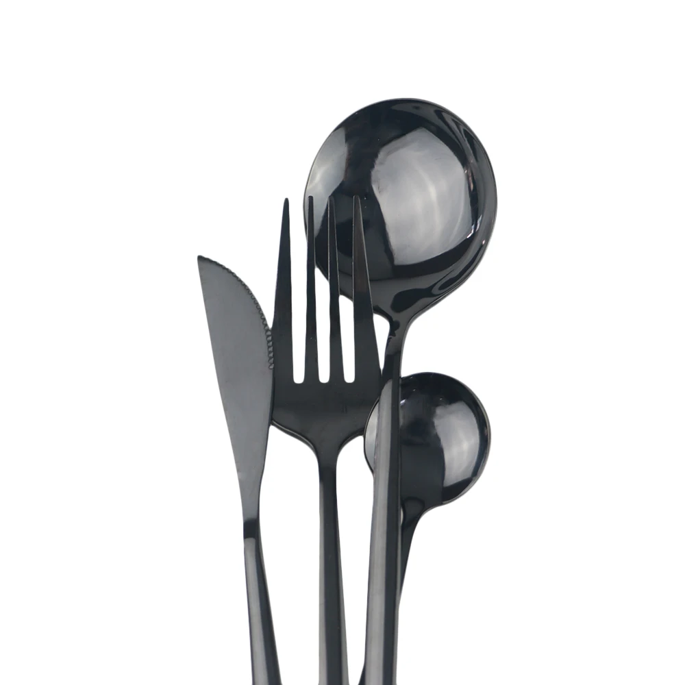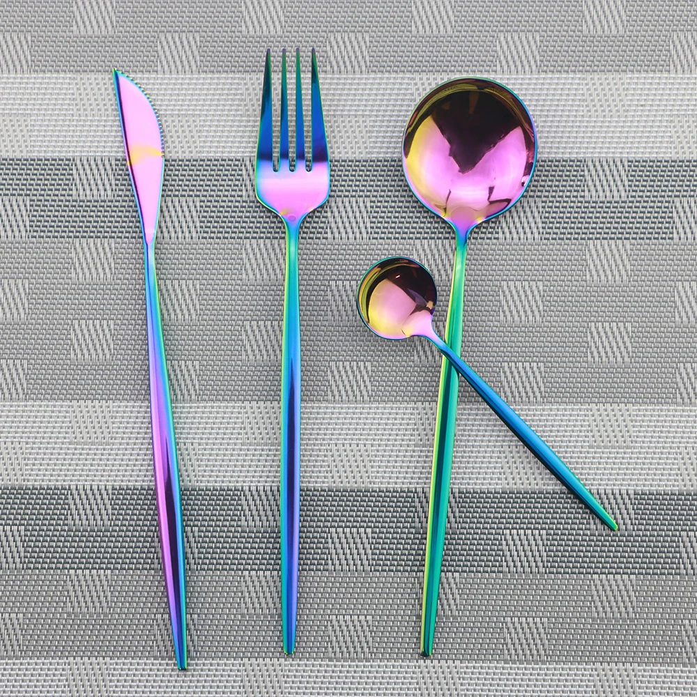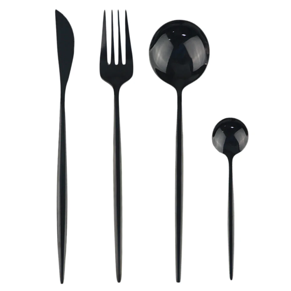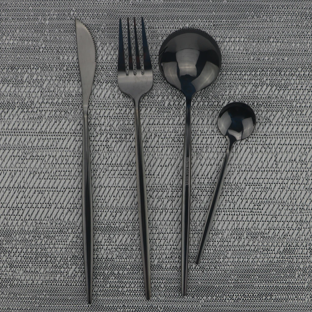 Набор посуды из 4 предметов, корейские черные столовые приборы, блестящее зеркало, 304 нож из нержавеющей стали, вилка, ложка, чайная ложка, столовые приборы, набор серебряных изделий