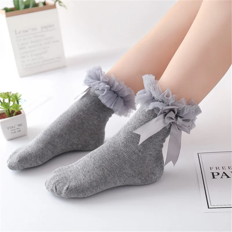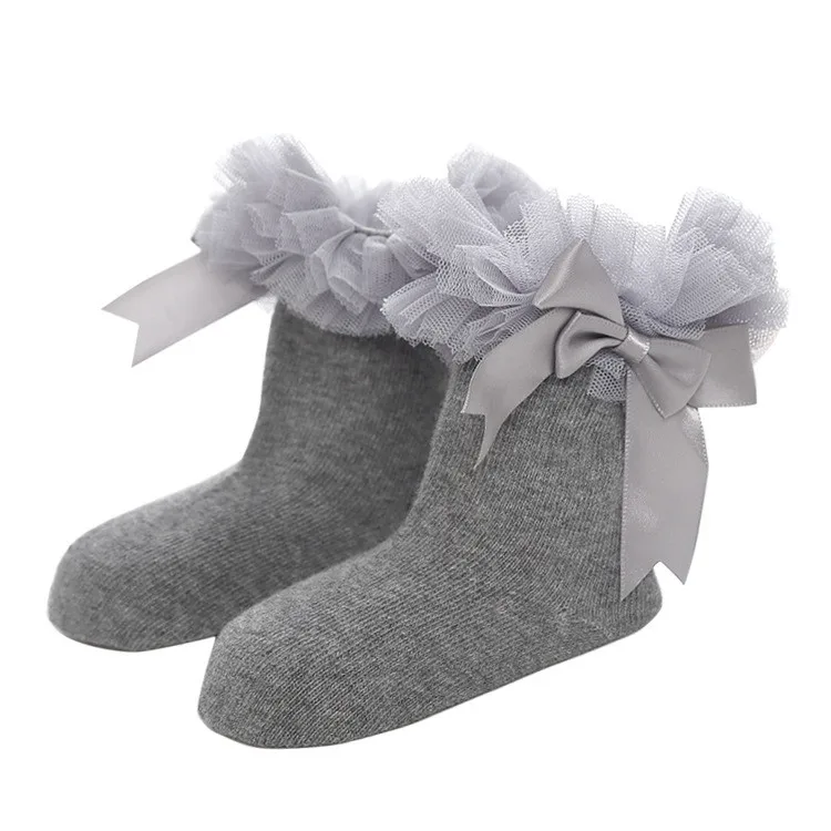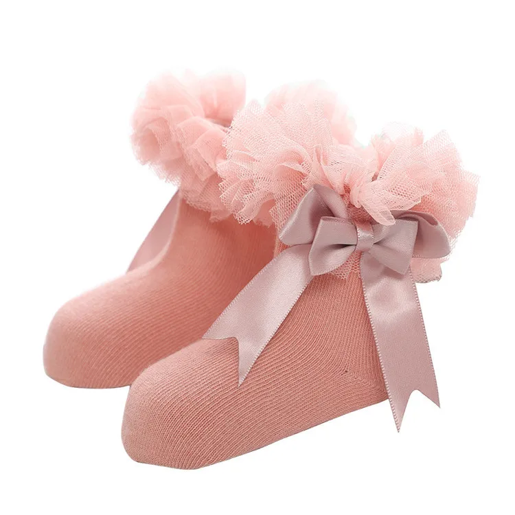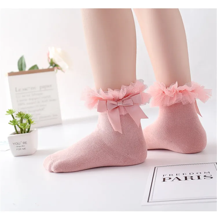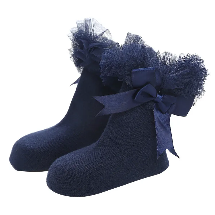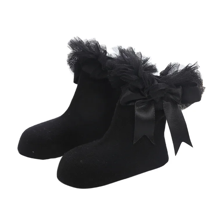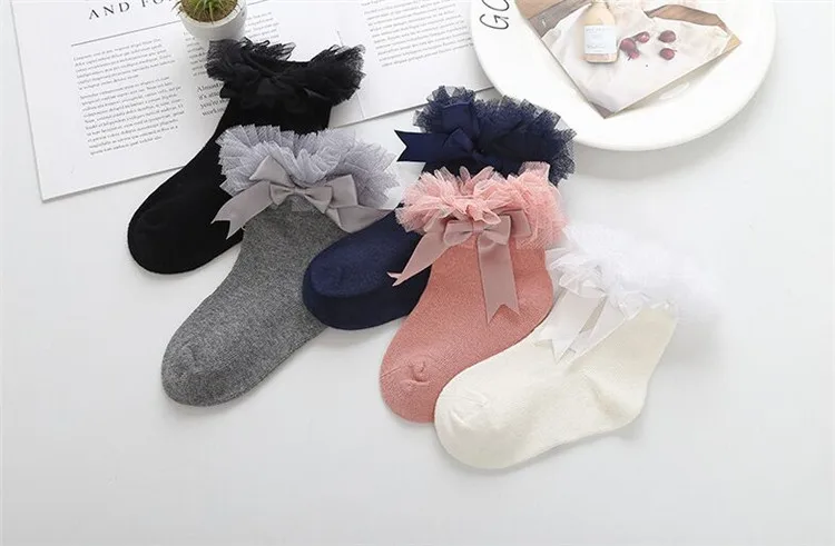 Носки принцессы для маленьких девочек, кружевные носки с бантом для девочек, хлопковые детские носки для девочек на осень и зиму, модные детские вещи