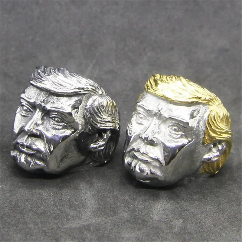 2020 Винтаж Мода в стиле панк-рок, в стиле хип-хоп Творческий Дональд Трамп кольцо для Для мужчин Роскошные амулетов в виде золотые ювелирные кольца