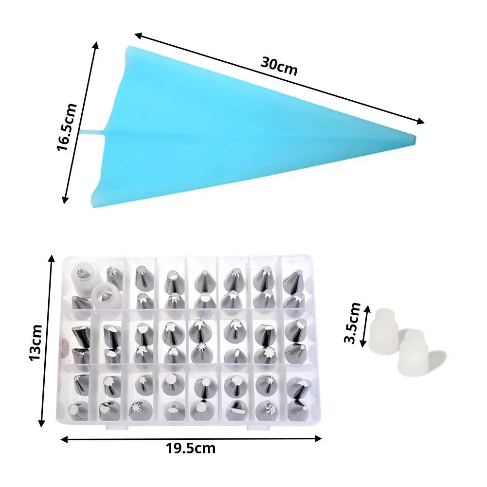 1. Изготовлен из абсолютно новой высококачественной нержавеющей стали 4302. Безопасный и практичный. Легко чистить3. Различные модели4. Несколько ящиков для хранения для свободного выбора и удобного храненияФункция продукта: насадка для крема для украшения торта, насадка для укладки печеньяПараметры:1. Материал: нержавеющая сталь, ПП пластик, силикон2. Размер: см. Иллюстрацию для получения подробной информации. Высота каждой насадки: 2,6-3,5 см/1,02-1.38in; Нижний диаметр: 1,8 см/0.71in3. Количество аксессуаров: 51 шт.Меры предосторожности:После использования, пожалуйста, Вымойте и высушите на воздухе перед укладкой.Упаковочный лист:48 * носик для украшения2 * конвертер1*12 дюймов силиконовый трубопровод мешок