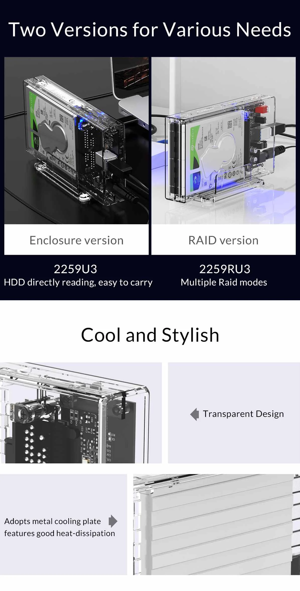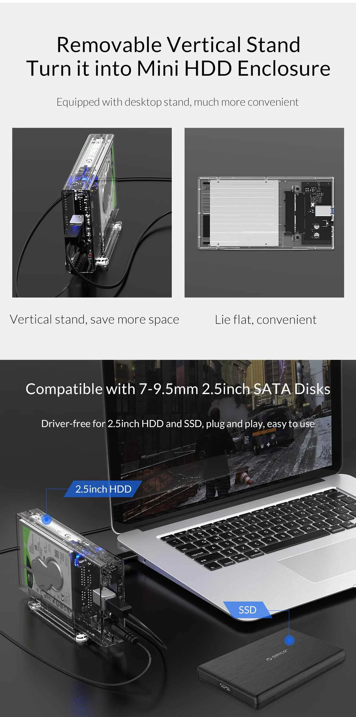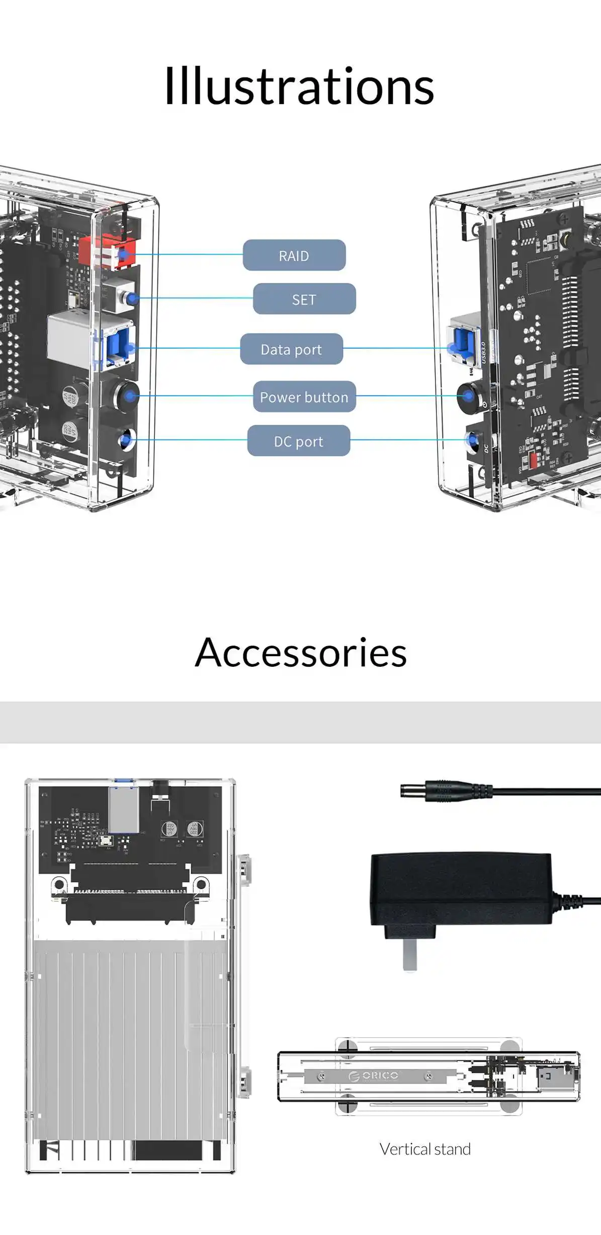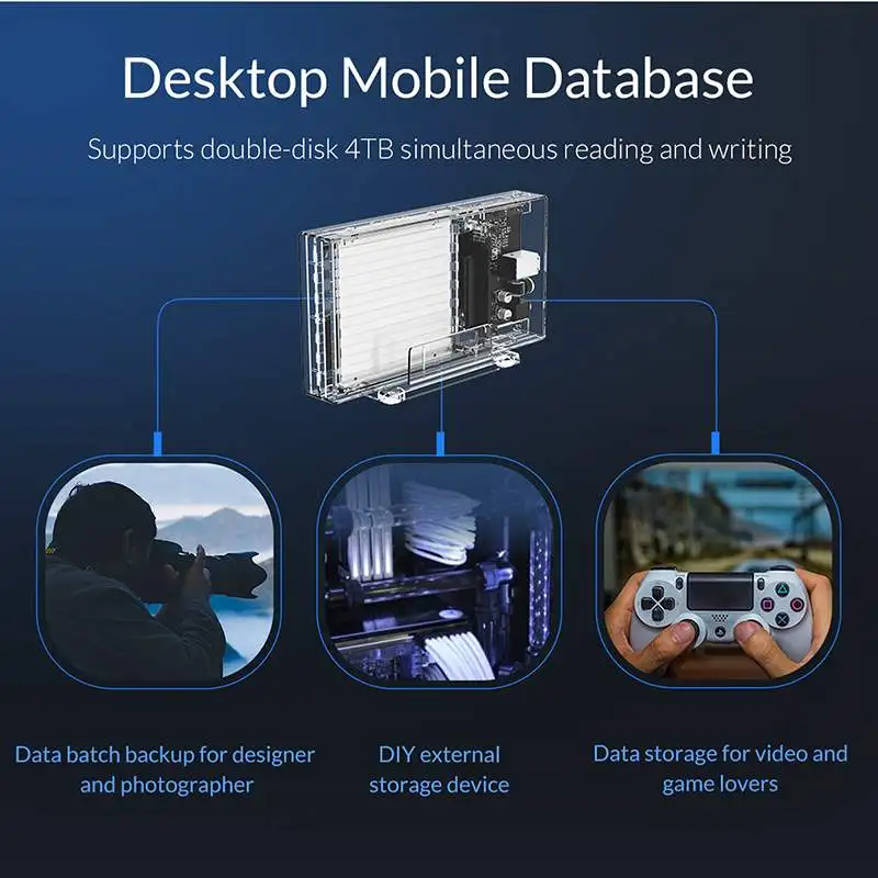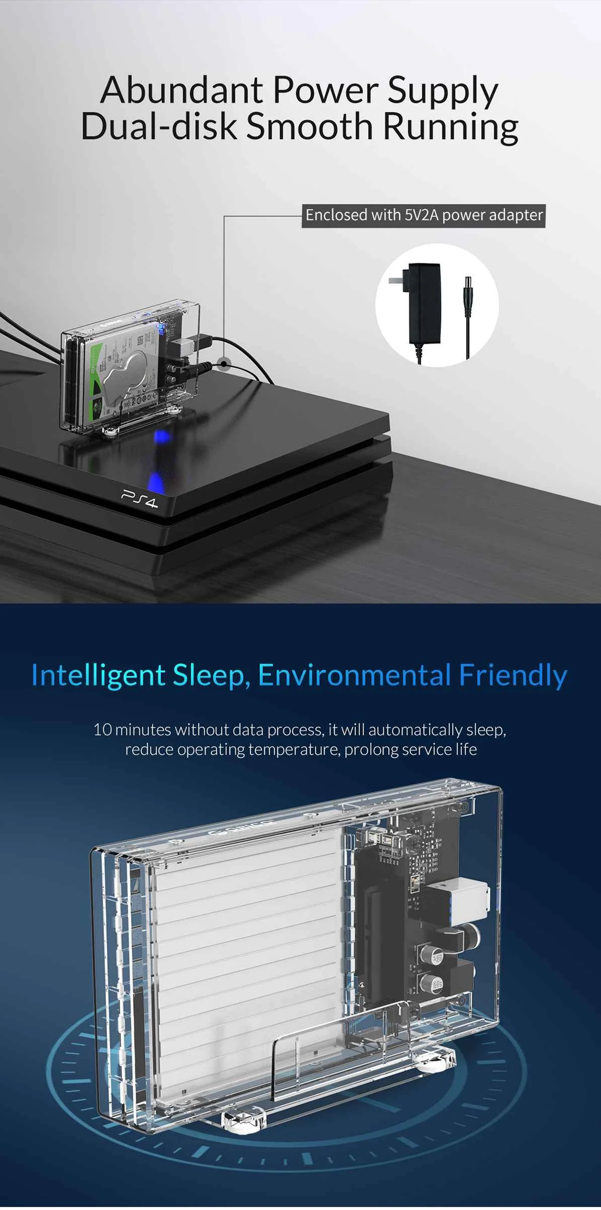 Чехол для жесткого диска ORICO 2 Bay 2,5 дюйма, SATA на USB 3,0, прозрачный корпус для жесткого диска, поддержка UASP для 7-9,5 мм HDD SSD с адаптером 5 В