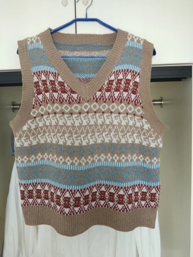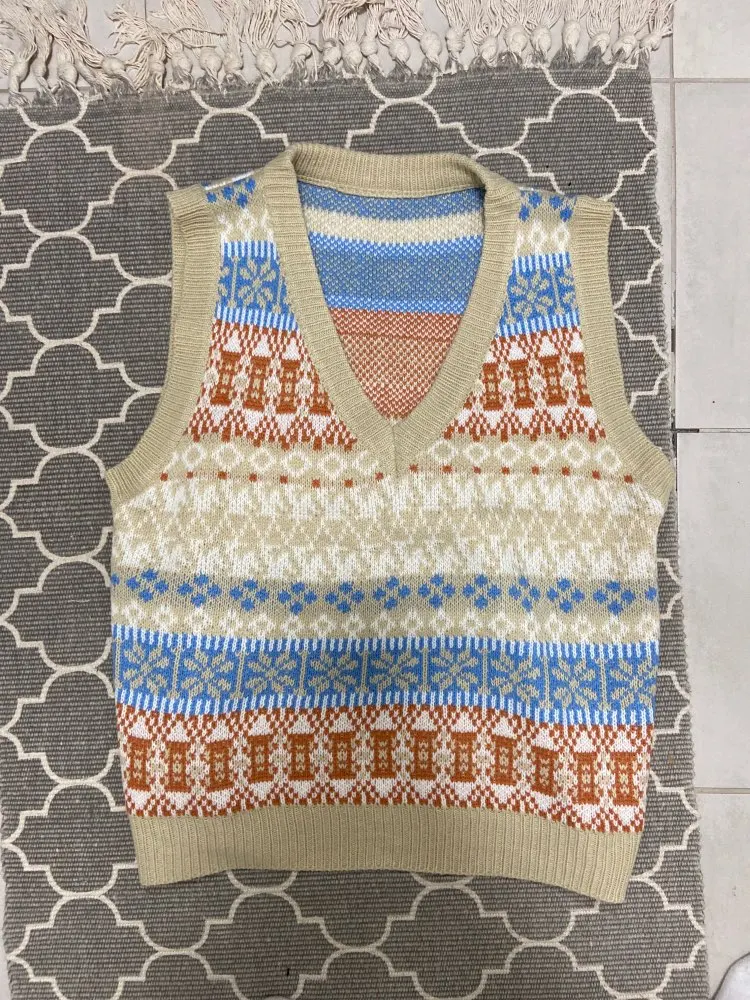 Женский свитер с геометрическим рисунком, свободный винтажный пуловер большого размера, осень Трикотажный жилет без рукавов