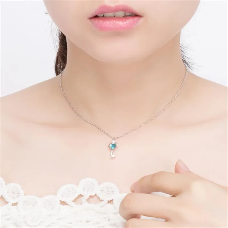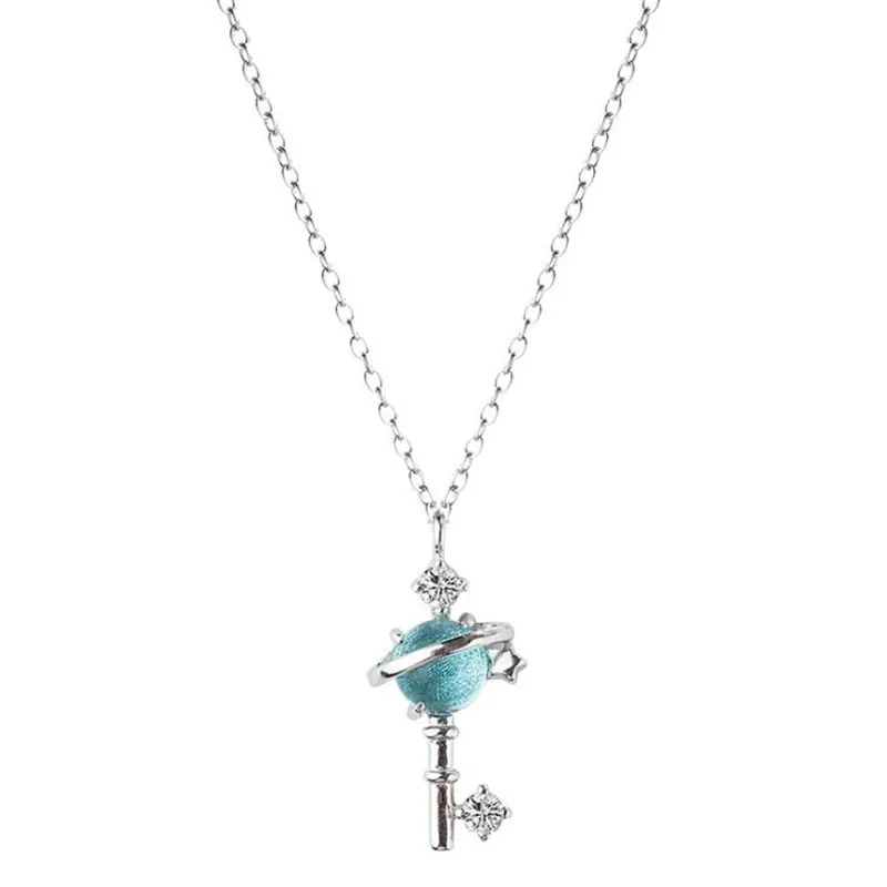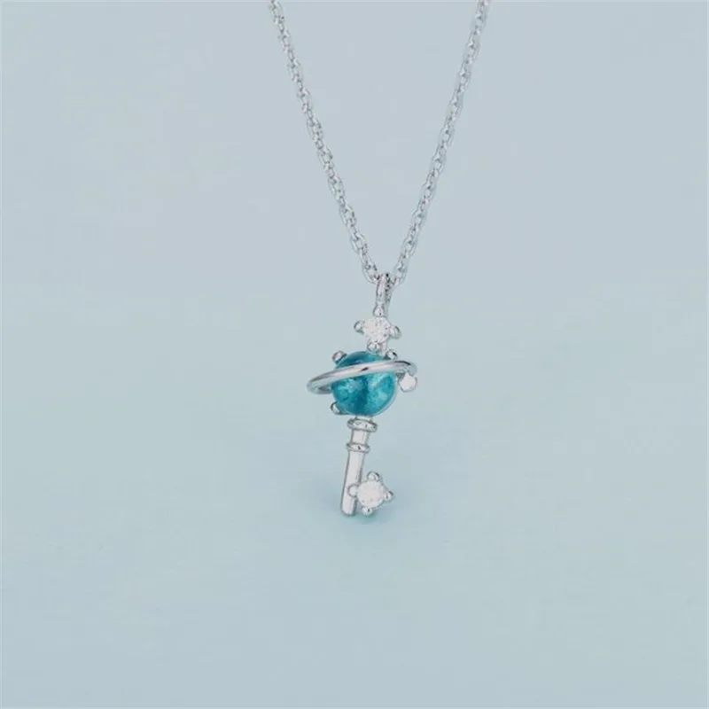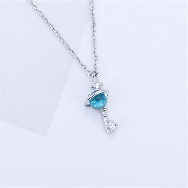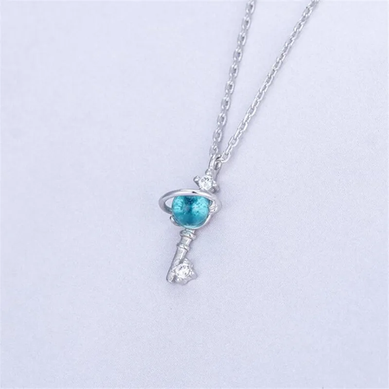 Новое поступление, креативные модные ювелирные изделия из стерлингового серебра 925 пробы с изображением планеты и ключа, красивое ожерелье с кулоном из голубого кристалла, H450