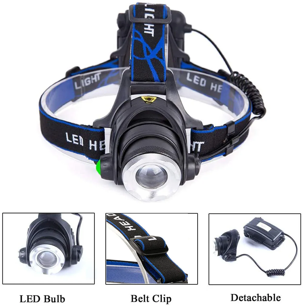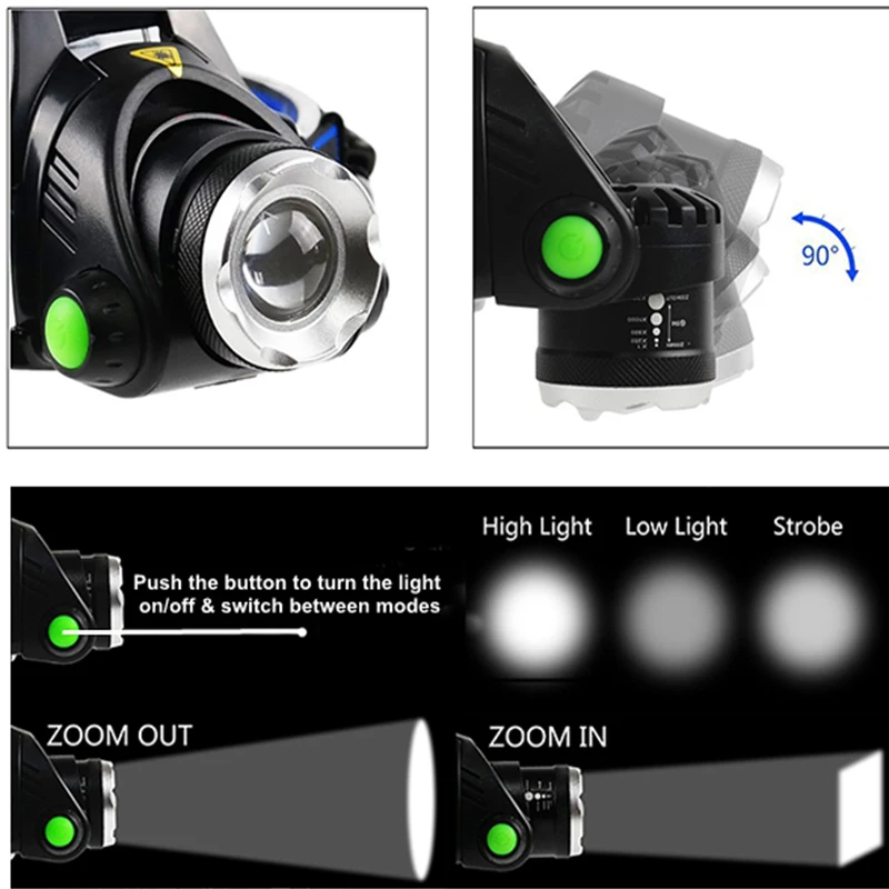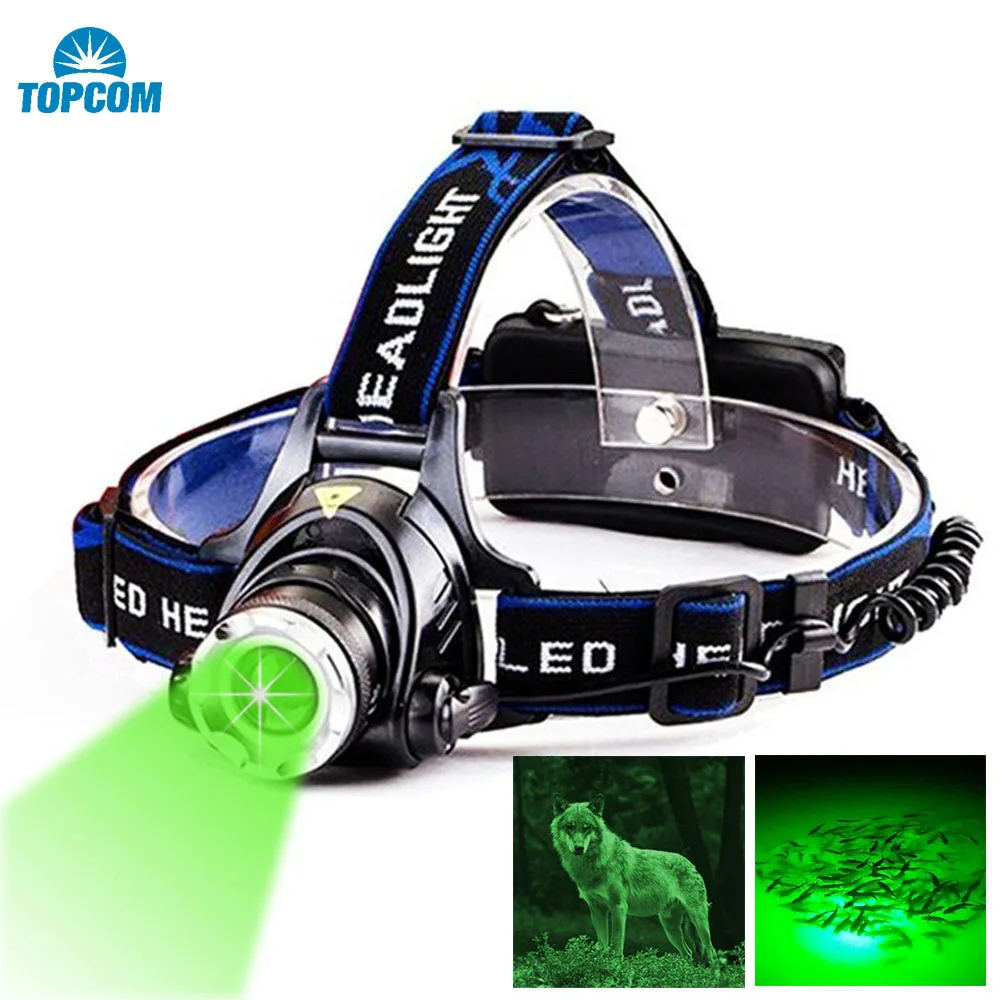 Светодиодный налобный фонарь TOPCOM, USB, перезаряжаемый, 10 Вт, XML T6, зеленый или белый свет, Налобный фонарик, фонарь для охоты