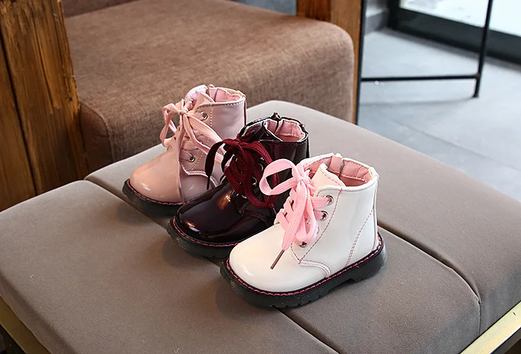 2019 Новая Осенняя куртка для мальчиков, Водонепроницаемый Лакированная кожа зимние модные теплые боты для девочек ясельного возраста; От 1 до 6 лет