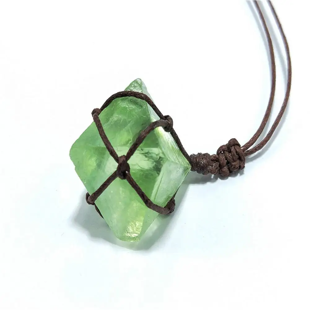 Ожерелье с оплеткой веревкой, зеленое ожерелье флюоритовая подвеска...