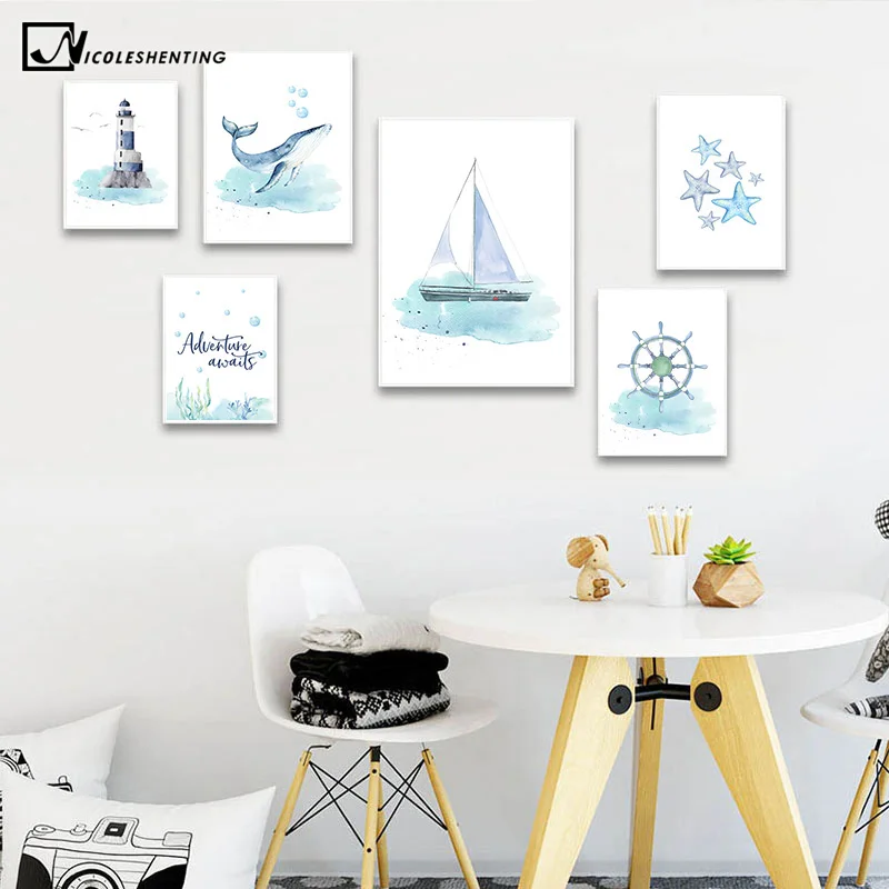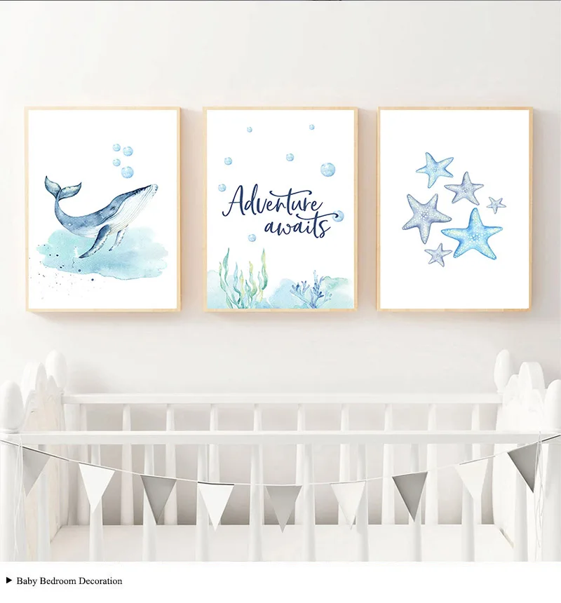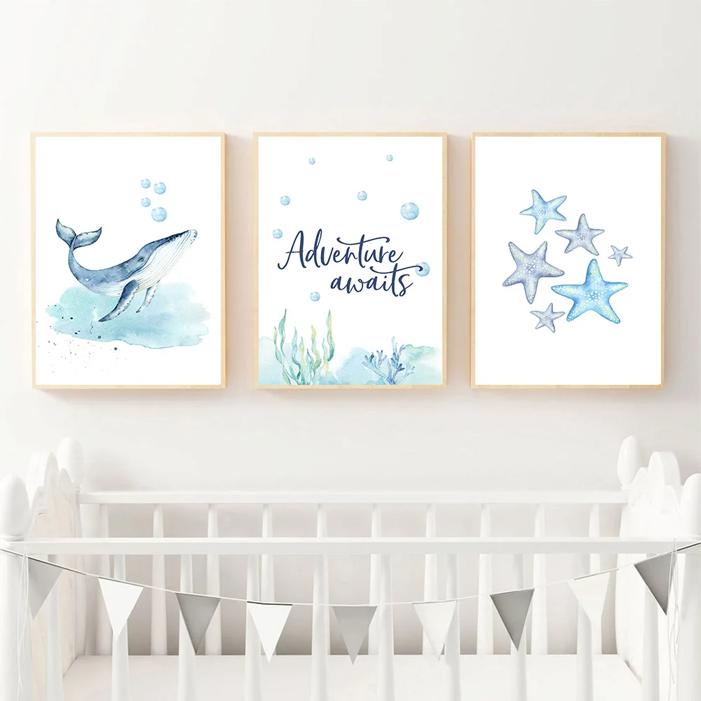 Океанское сафари, животные, динозавр, постер для детской комнаты, х...
