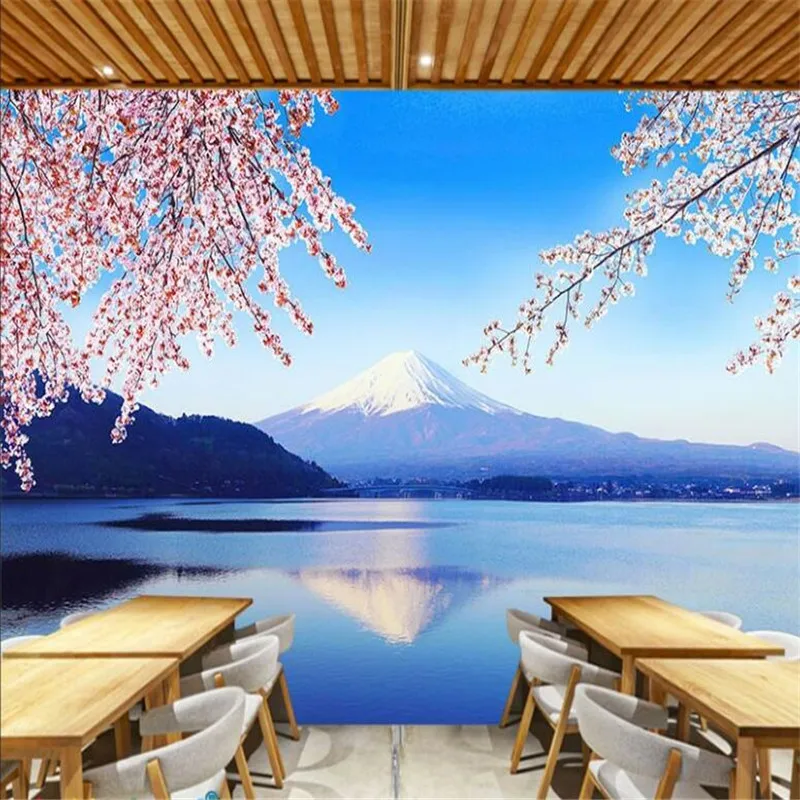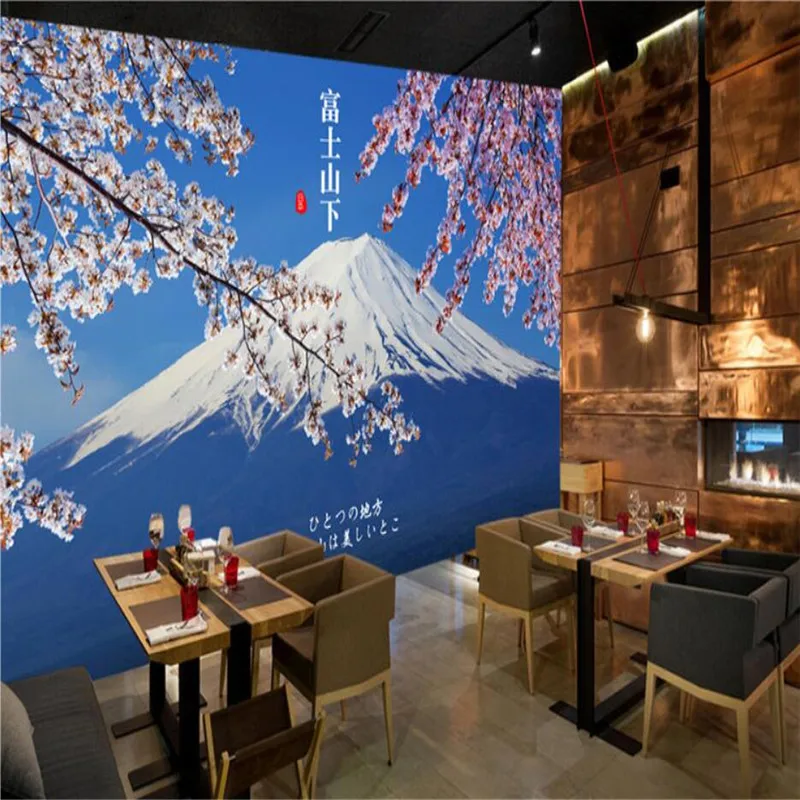 Пользовательские вишневые цветы Фудзи горы обои 3D японский Ресторан Суши Ресторан изакая отель фон настенная бумага