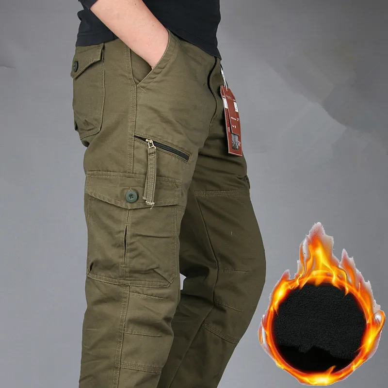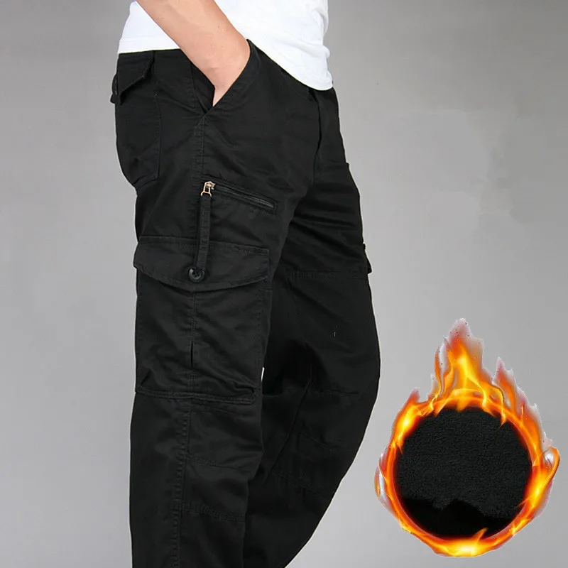 Мужские зимние хлопковые флисовые теплые брюки-карго, Мужские штаны...
