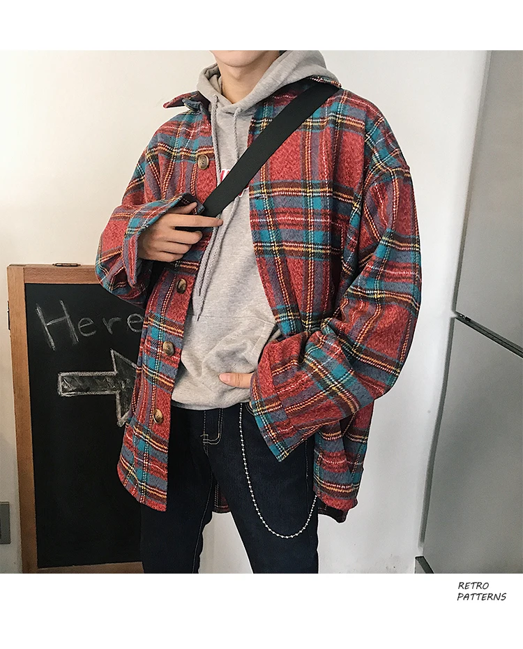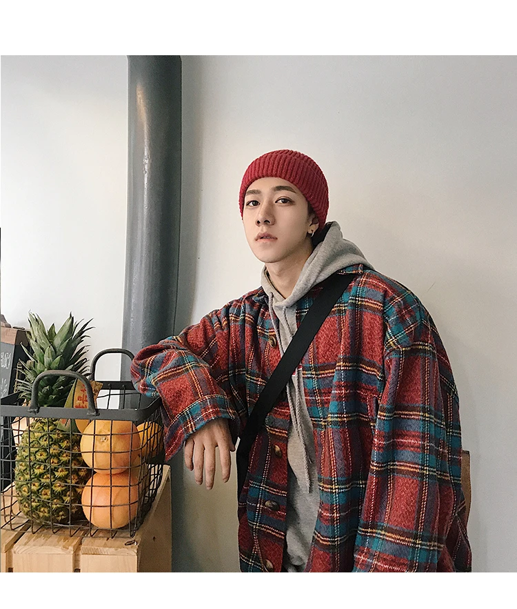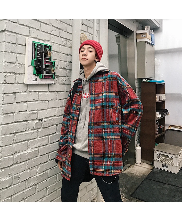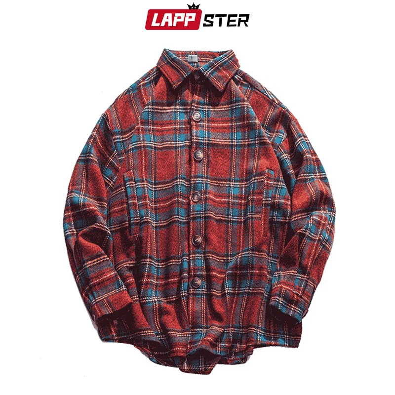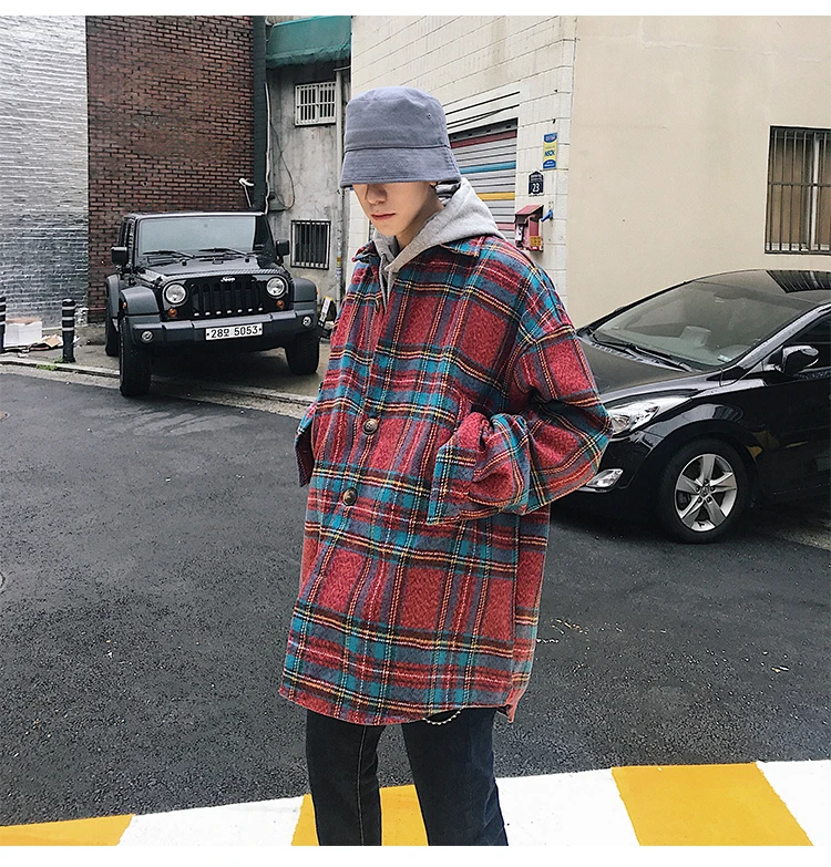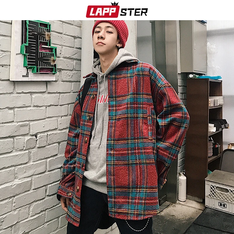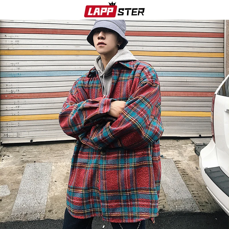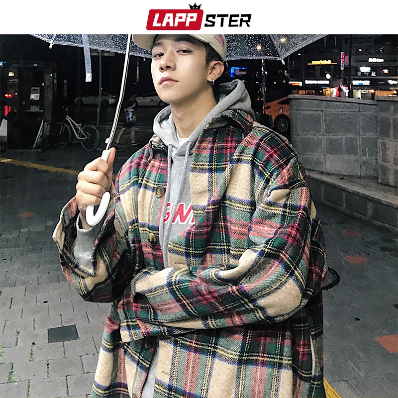 Мужское шерстяное пальто LAPPSTER, в клетку, в стиле Харадзюку, винтажная куртка в Корейском стиле, куртка в стиле хип-хоп, ветровка, 2021