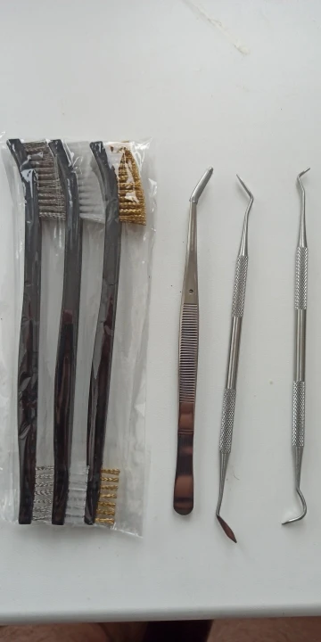 Отличный набор для чистки, качество хорошее Материал - металл. Доставка чуть больше месяца.
