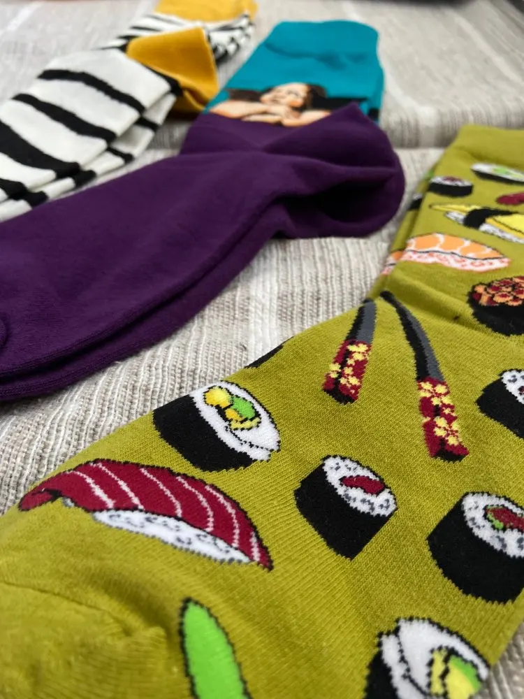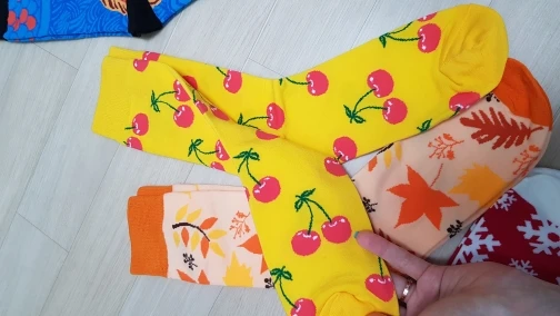 Заказала рандомный стиль, как ожидалось пришли с не очень классным принтом. Носки качественные, тонкие. Покупкой довольна