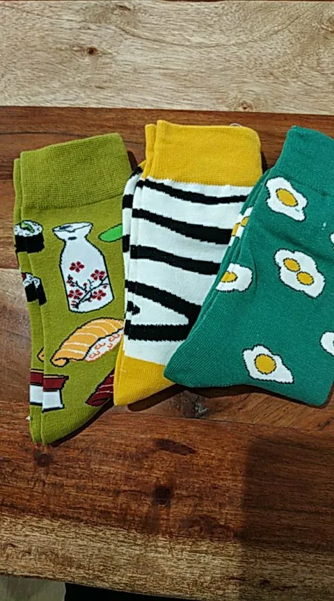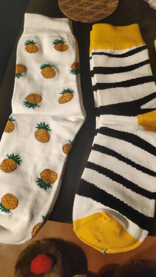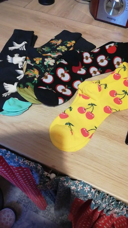 Прикольные носки, очень красочные и мягкие. Продавец довольно быстро отправил заказ, но доставка... заняла целую вечность. В какой-то момент уже смирилась с мыслью о том, что не получу посылку, но всё закончилось хорошо в конечном итоге.