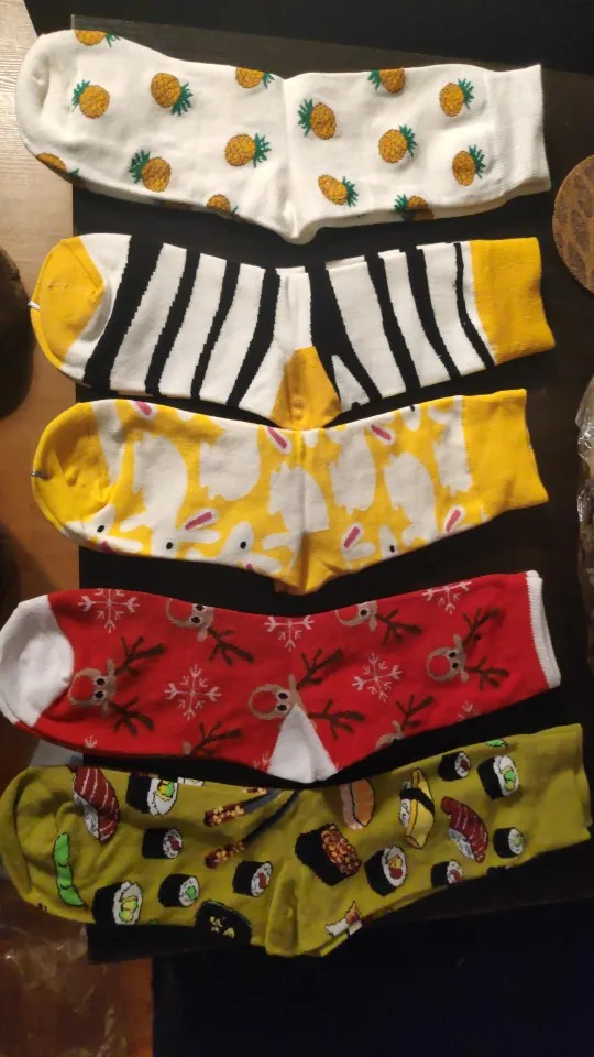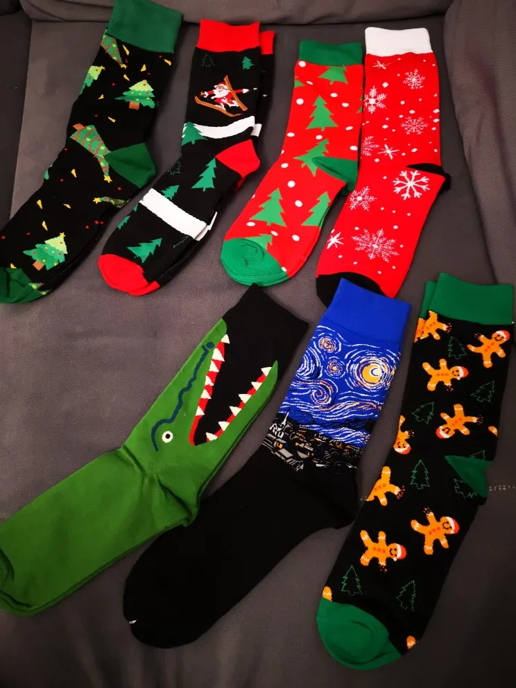 Эти носки как рождественские подарки для моих братьев и сестер по законам, и на их получение ушло около полутора месяцев. Я рад, что они прибыли во время Рождества. В целом, я доволен, на нем есть только один носок черного цвета. Мы надеемся, что Он сойдет после стирки. Все остальное как на фотографиях.