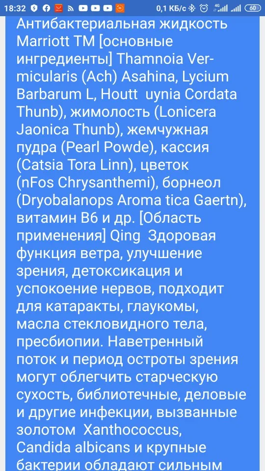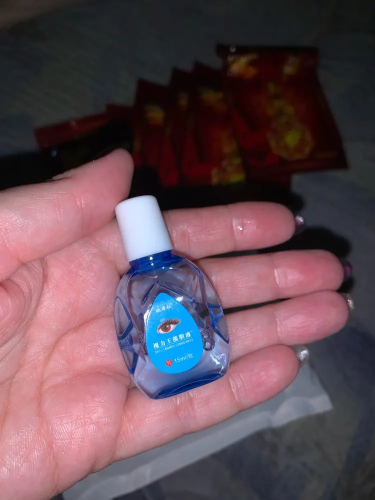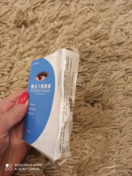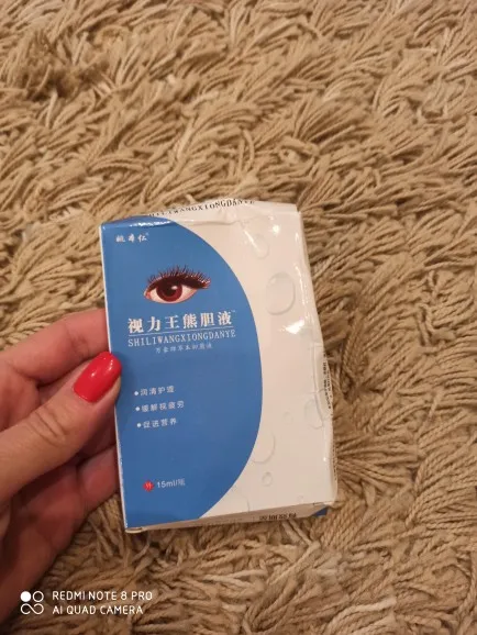 Очень красивый флакон, в виде кристаллика, коробка помчалась, но что поделать. Проверила на одном глазу, чувство увлажнённости придаёт комфорт. Попробую капать в течении нескольких дней, как написано в инструкции. Скрины перевода с китайского на русский прилагаю в фото.