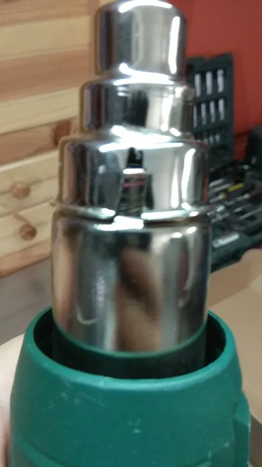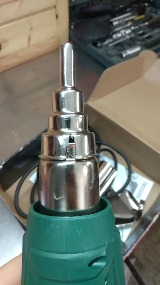 К сожалению, сопло имеет небольшой диаметр и не может ее zalozyc для теплового пистолета без зубчатых частей, которые nachodzi для теплового пистолета на выходе.