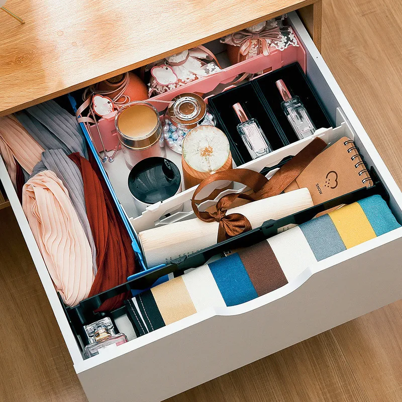 Простой в использовании и очень практичный гаджет для разделения кухонной утвари, столовых приборов, нижнего белья или даже документов в любом ящике.