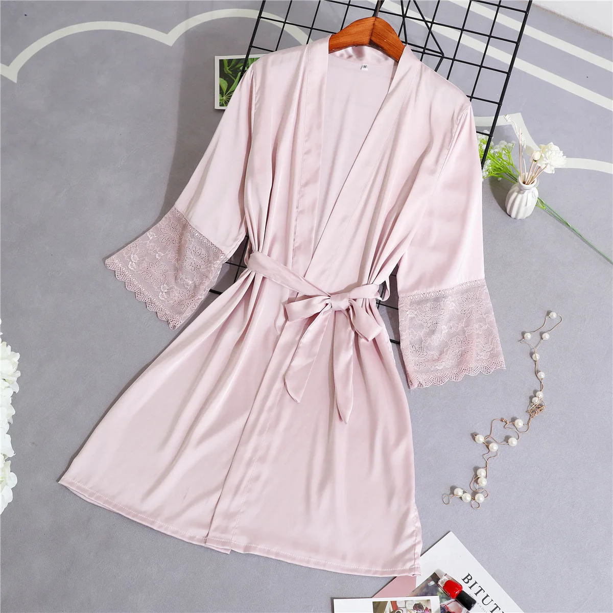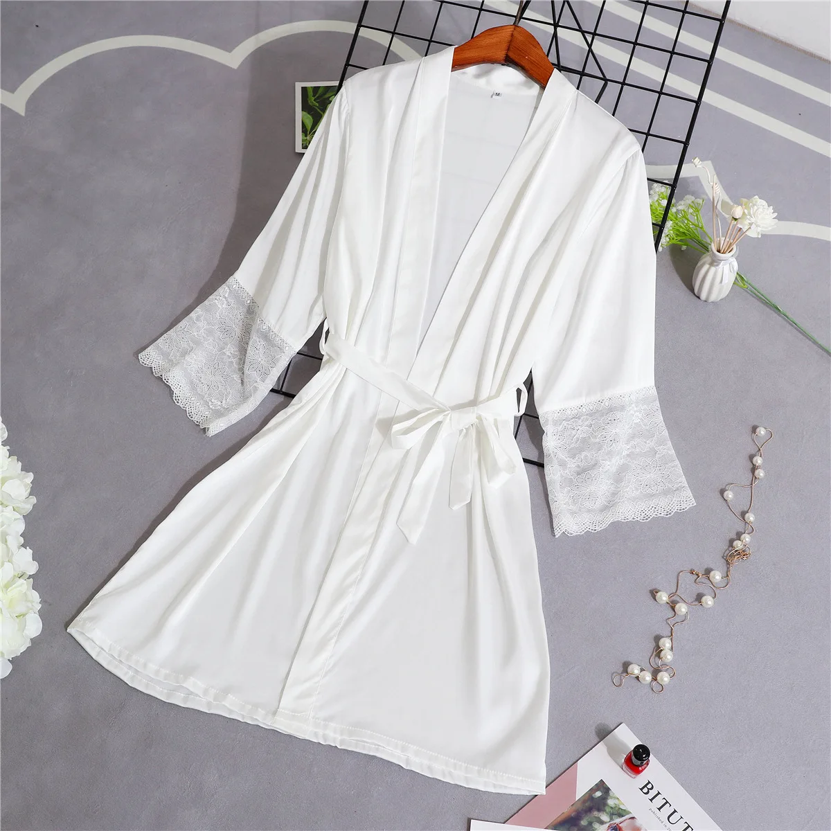 Женское банное платье-кимоно из мягкого атласа, повседневная Летняя короткая ночная рубашка, ночное белье, сексуальное кружевное интимное нижнее белье, Свадебный Халат